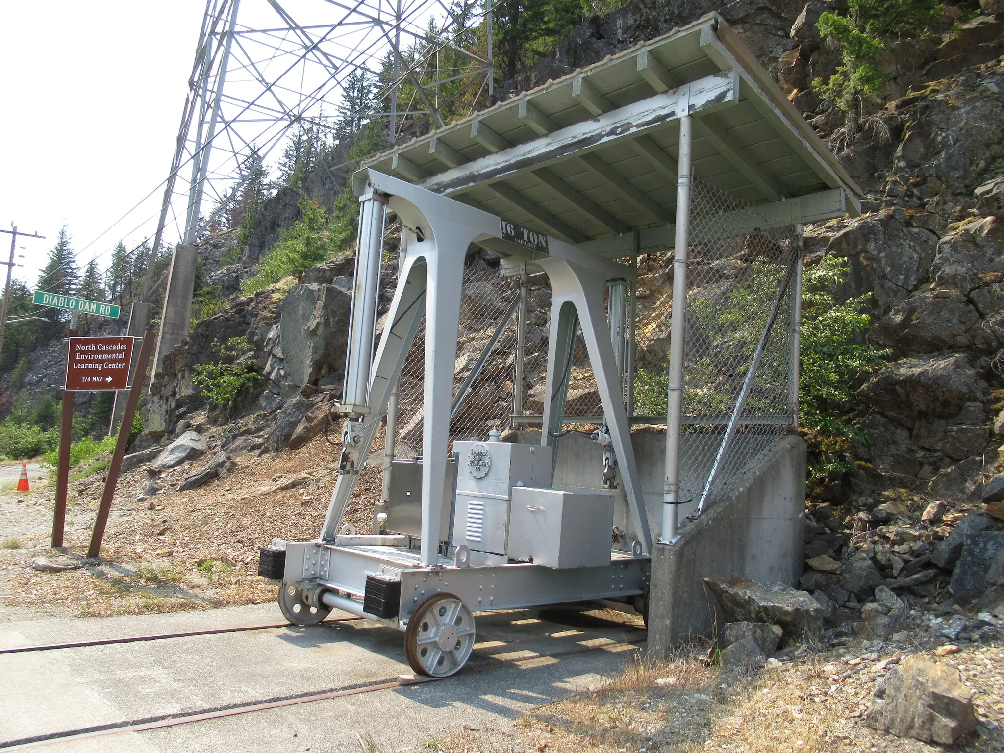 I don't know what this did, but there was a train-like track for it to move the full length of the Diablo Dam (road on top).