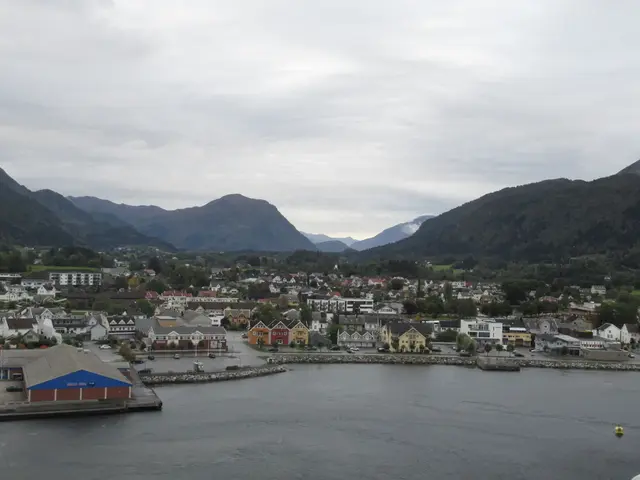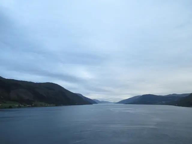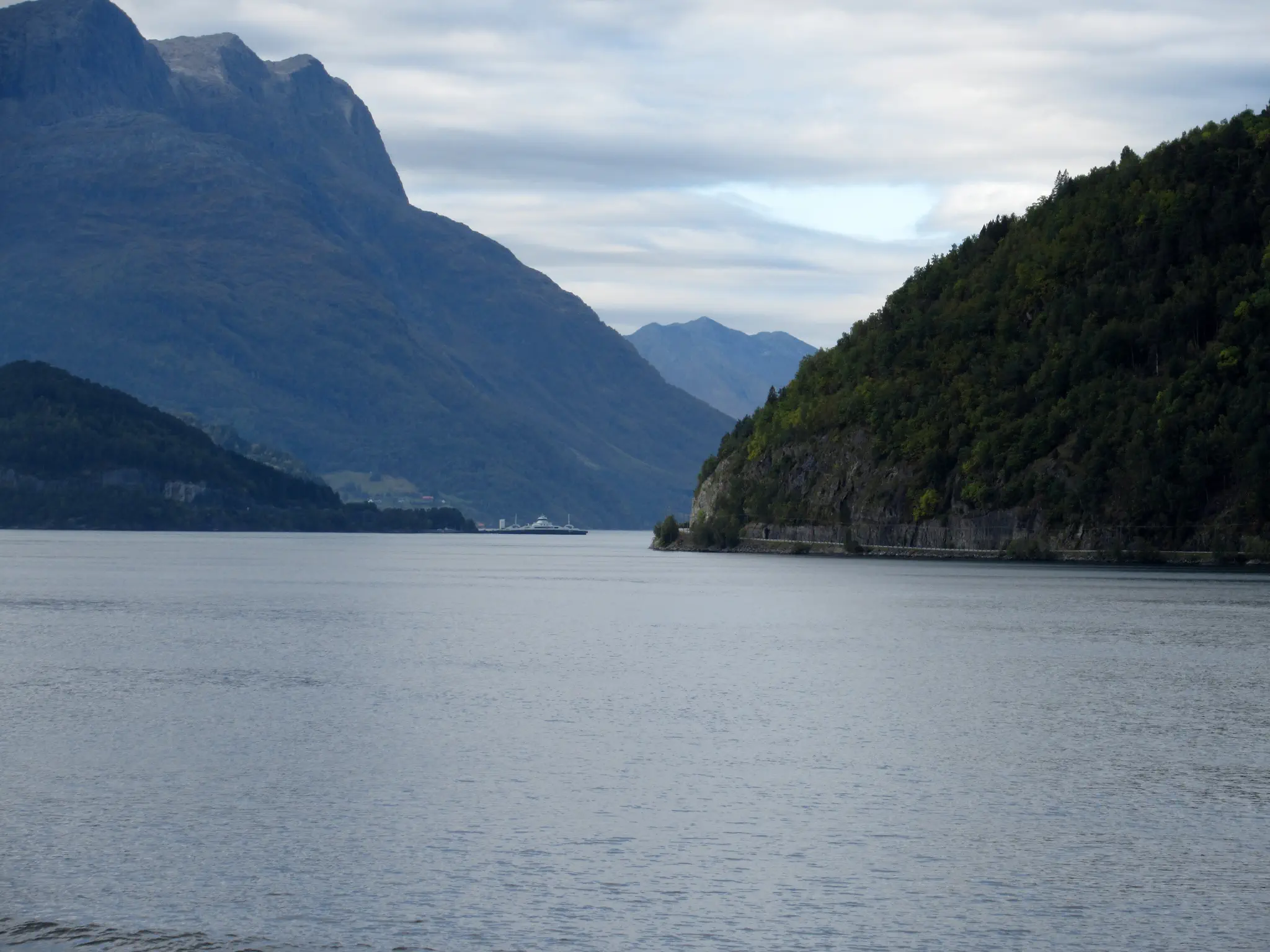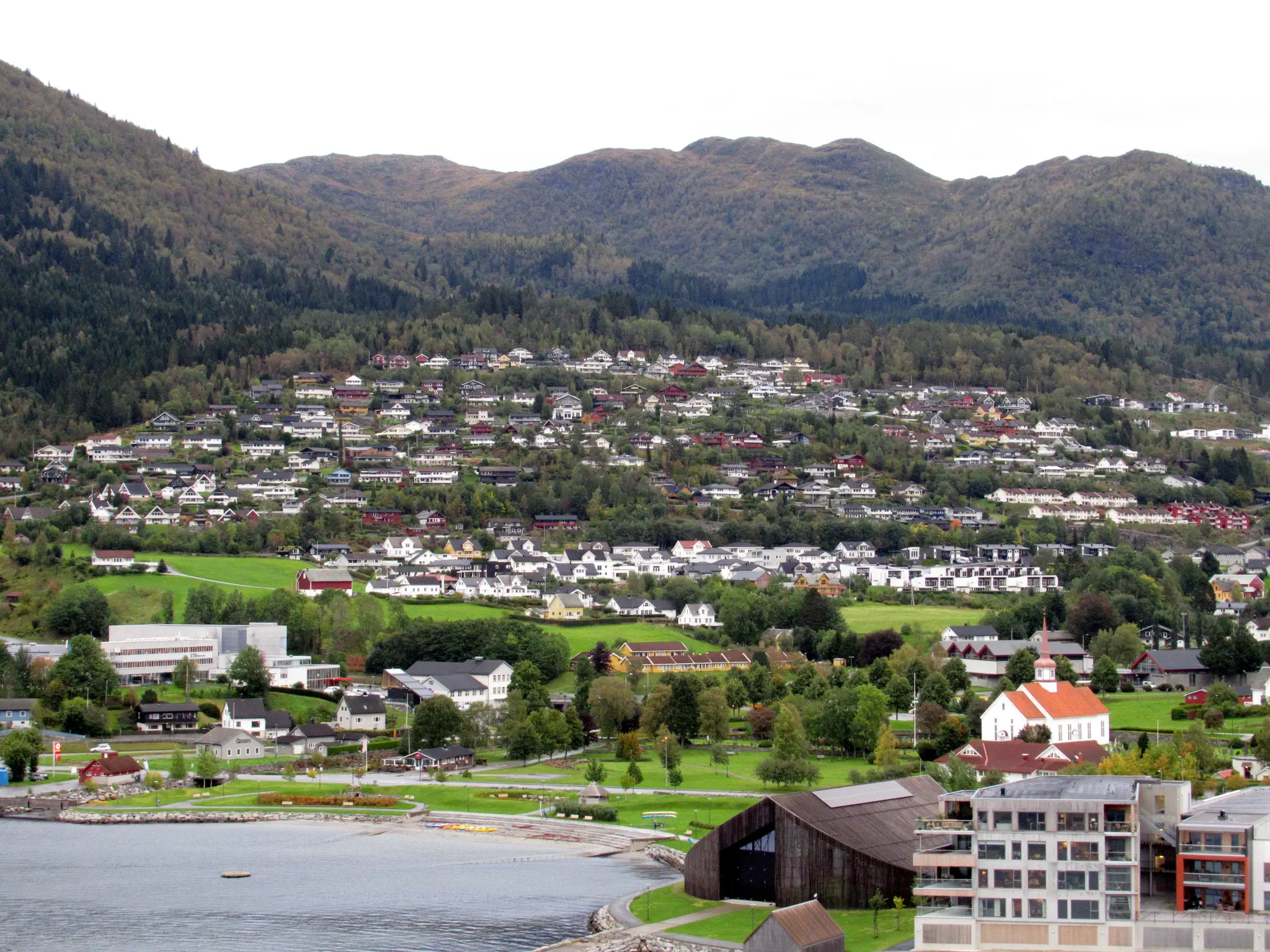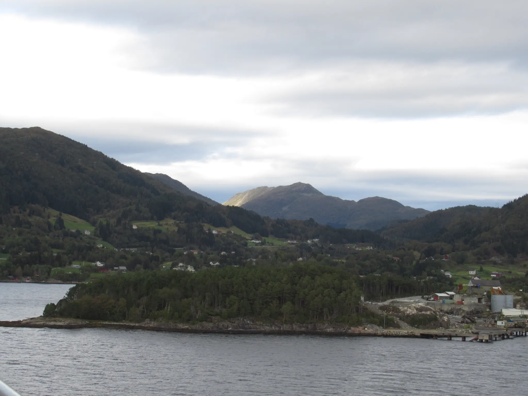 The Captain got us docked, and then with the harbor master determined it was too windy for us to stay docked. We had the submersible moorings like we experienced the previous day in Flam, and they were not rated for that much wind against the full side of the ship. So close, yet so far. After the decision was made, we unmoored and went to do some scenic fjord cruising. This was nice, as we had not gotten to see much or any fjord scenic cruising since we were there when it did not get light as early and got dark earlier. I got some pictures of the town before we left since we did not get to get off to visit it.
