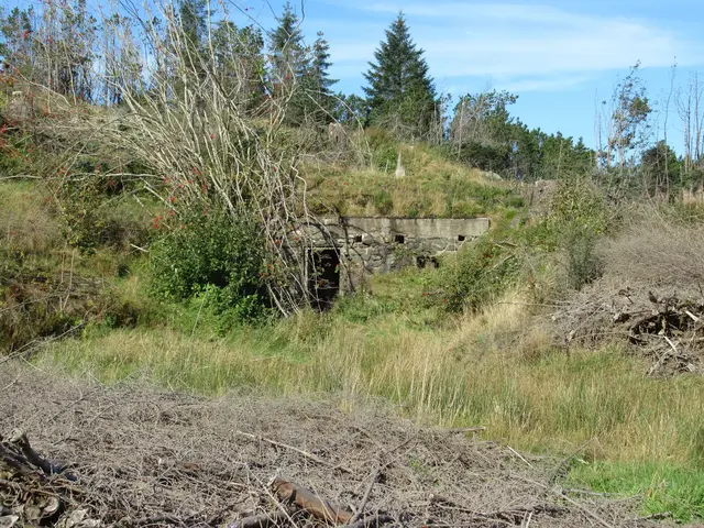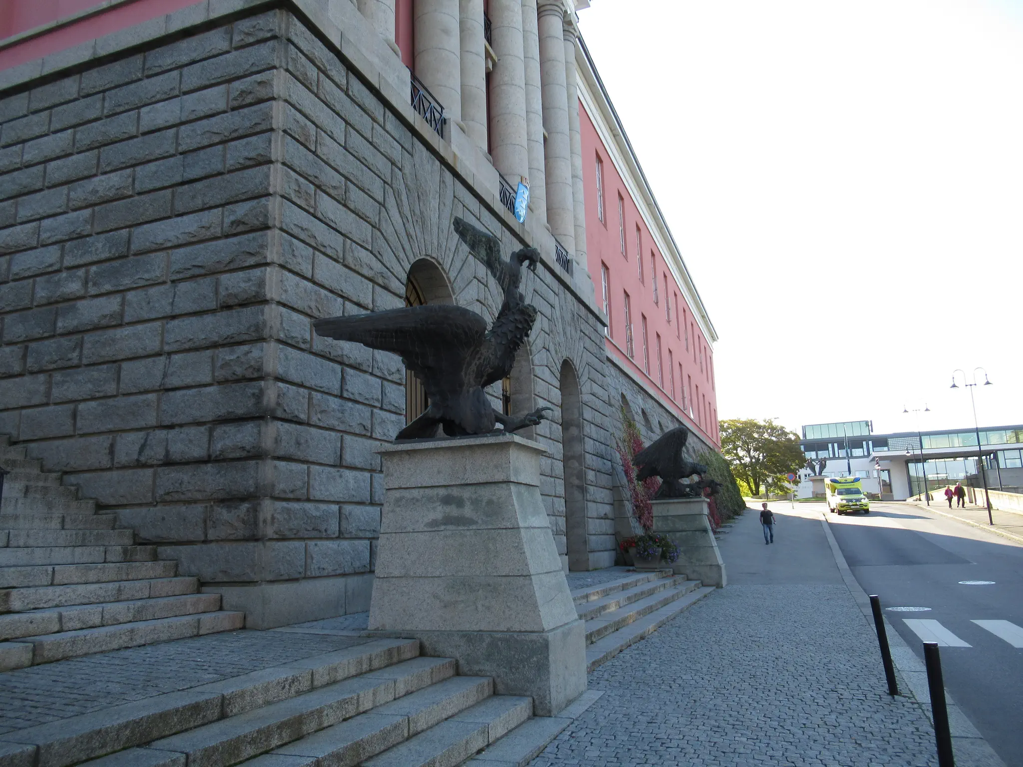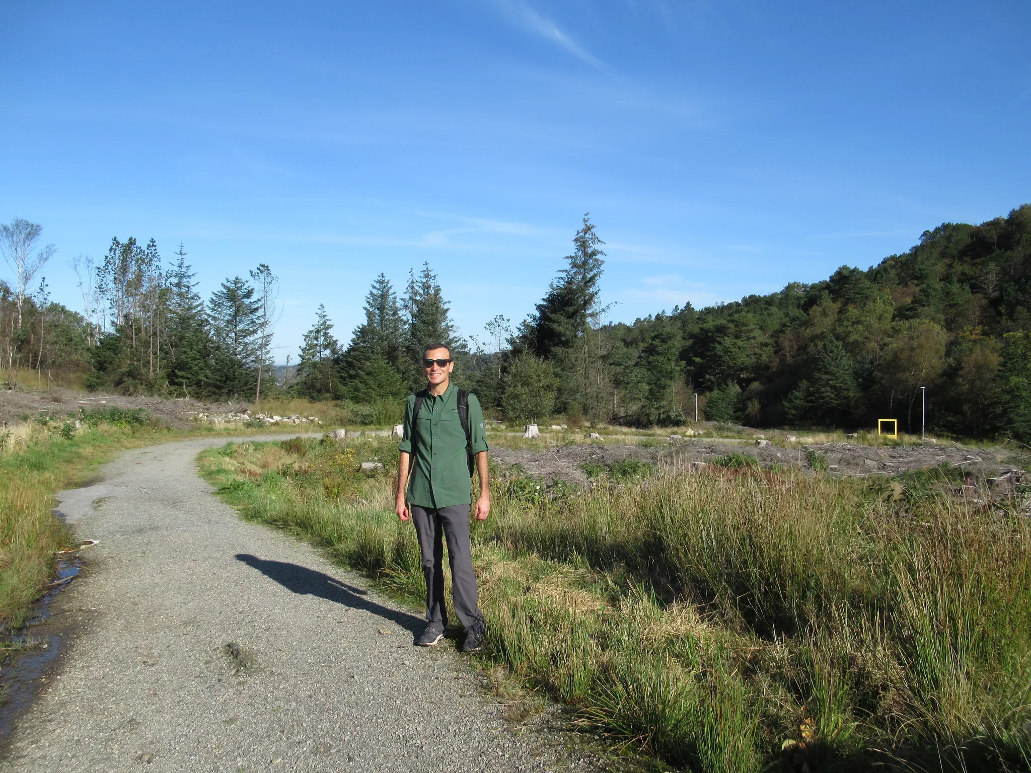 Starting the hike to and around the Djupadalen area. It was challenging to find the trail, getting through town. After finding the trail, there were some muddy, difficult parts of it. There were small kids hiking it too. When we first saw them, they were in a tree in bright, hazard vests. I thought people were trimming the tree at first, then thought kids working in trees, and then just kids playing in a tree. The hazard vests was just for their teachers or adult supervisors to be able to keep up with them. The kids were good at hiking up hill. The old fort (see the dark doorway; I was able to go in) and then a view from the top. Then lots of cut down trees/tree stumps for some reason.