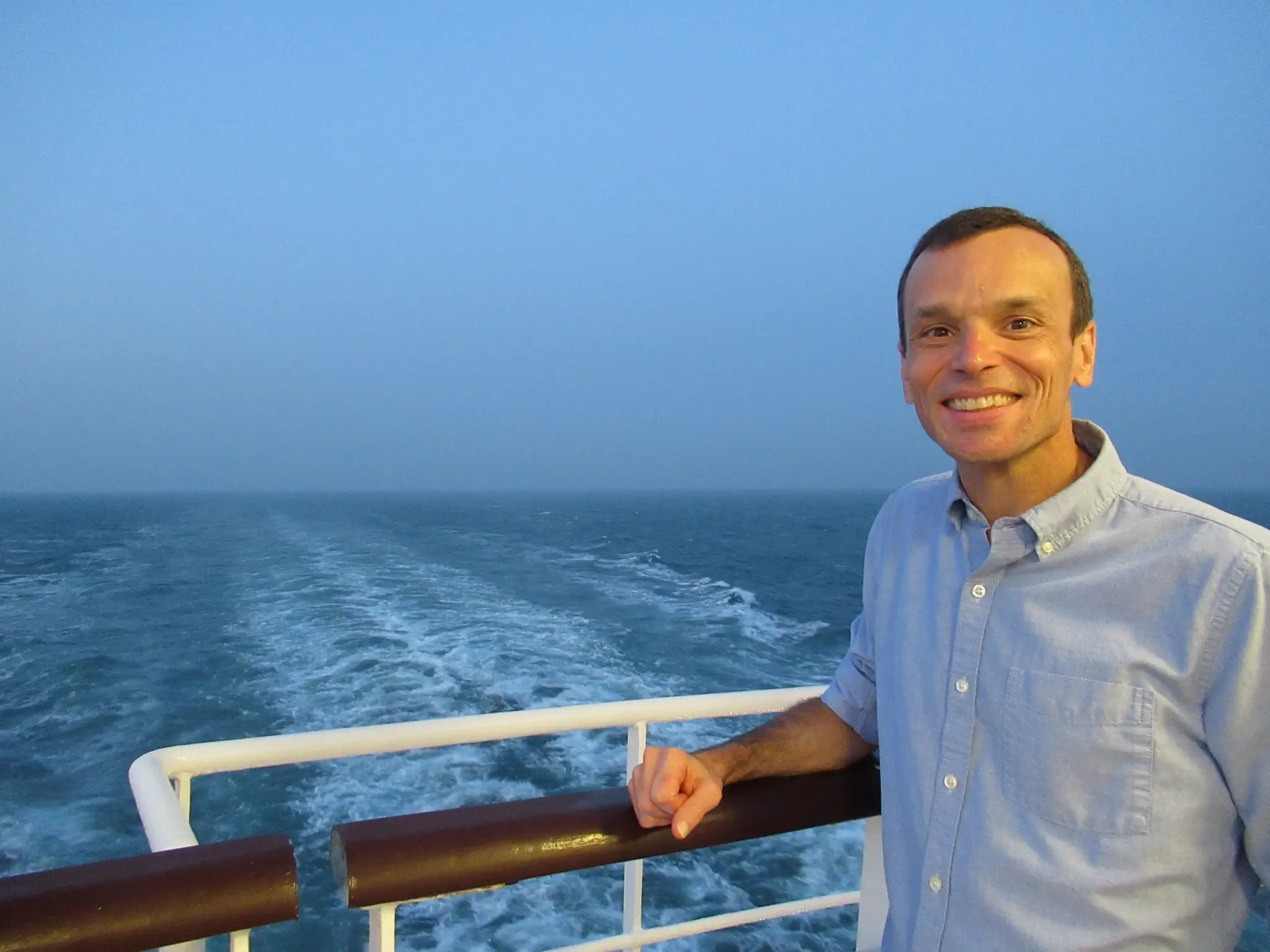 The last night's MDR picture. Four others got away, our waiters took pictures with everyone, before we thought to get a picture. I liked the diver sculptures in the buffet. Last sunset and wake at sea. I like seeing the full moon on the ocean and reflecting off the ocean. We had a full moon during this cruise; however, I found that it rose too late (okay, I'm getting old).