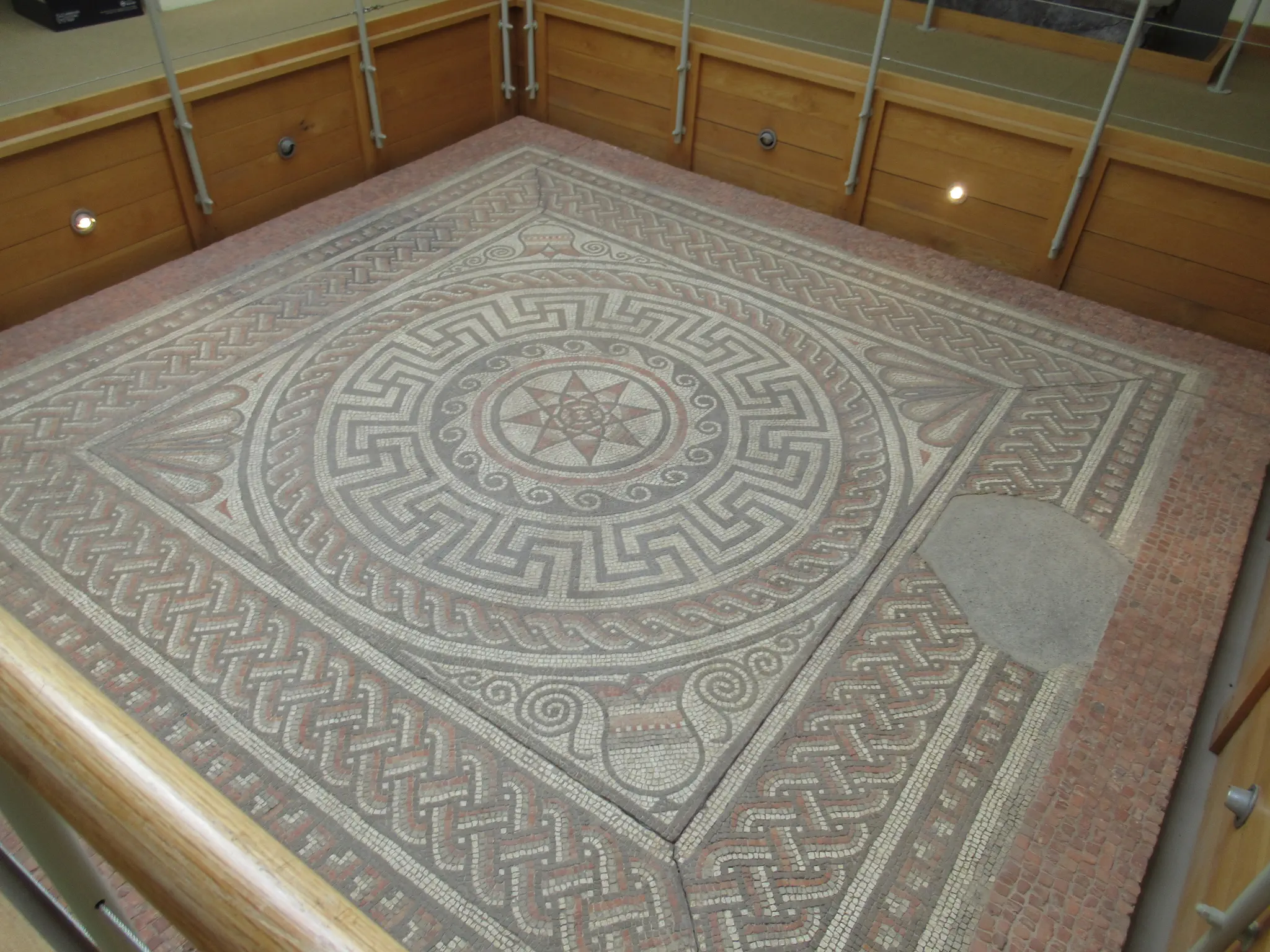 We then walked back to the Winchester City Museum and got the combo ticket -- 3 museums. Like the Sea City museum in Southampton, the ticket was good for a year, huh? First up, the Winchester City Museum; they had a restroom included. Saved mosaic at the museum. They also had a big diorama of the full city of Winchester.