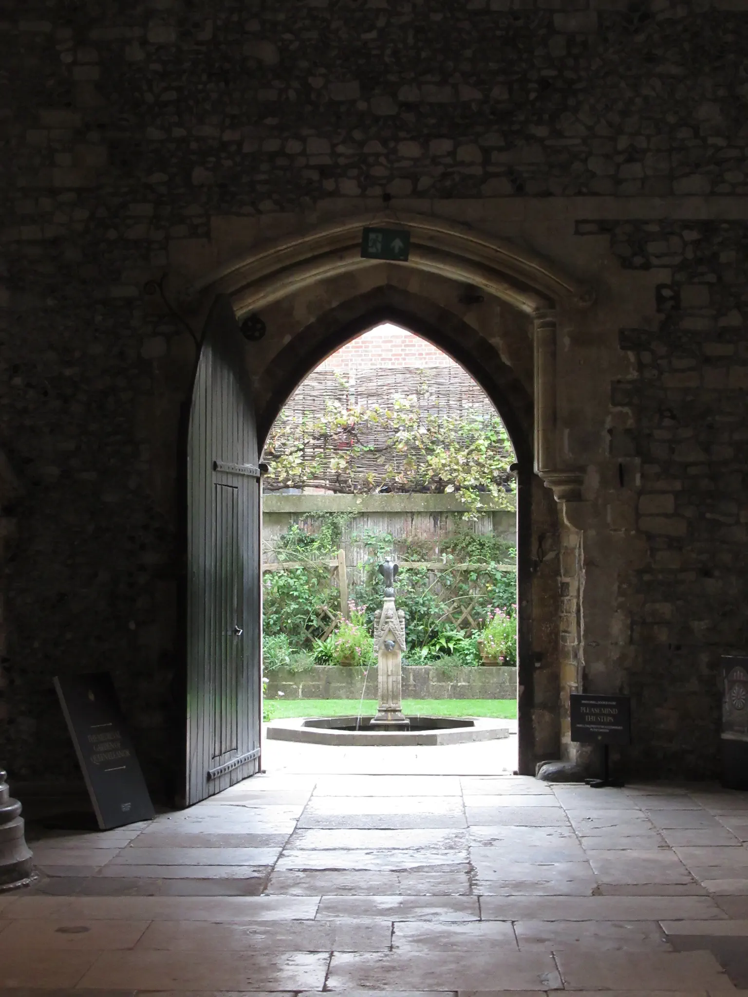 The Great Hall where the museum is. It started raining when we were inside, so we stayed inside until it passed. Stained glass in the hall, and a look into Queen Eleanor's Garden. After it stopped raining, we got to see the garden.