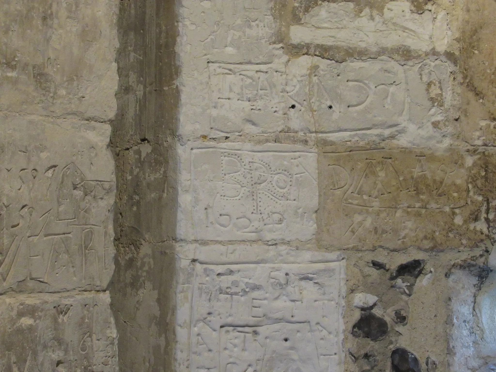 A peek of the new Bishop's residence's window over the walls of the ruins. I thought this rock was interesting and common throughout the town.