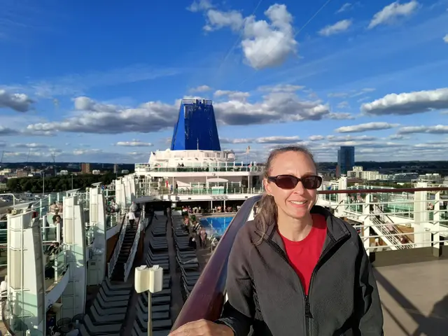There was a little rust on the hull, but the inside and the outside passenger decks were well maintained. The ship needed a better promenade. There was only two small sections on each side, one was the smoking section. After these sections, each side was blocked, citing safety and not wanting passengers near the lifeboats. We normally get to walk around the promenade on other ships with lifeboats with no issue. We enjoy walking the promenade and taking in the views. Included food was MDR (with some upsell items each night), the buffet, and a pizza and a hamburger places by the pool. The Crow's Nest, a front 270 degree view of the ocean, was very nice. The gym also had good window views. P&O; did a great job of keeping as up to date as things occurred (delayed departure, missed port, and medical evacuation). Also, the Captain's daily announcement was not always done by the Captain, but by anyone on the Bridge team. I heard that there was the possibly of P&O; having a dark and silent channel that would only un-silence and wake one up if the Northern Lights were out. They had been spotted the night before in north UK. I did not see anything about this, so I called Guest Services. They said the web cam channel, which we had to mute because it played music and cruise ship ads. Travis still did not want me to leave the TV on, so we only had it on the first night. When I was wake I looked at the channel for any signs of Northern Lights, though the quality was not good in the dark. The TV also went into sleep or suspend mode, so I finally grabbed the remote to wake it up when I woke up. No room announcements for the Northern Lights. I did not get to see the Northern Lights and was sad, being on the cruise in September, we did not have the long hours of daylight and had some good Northern Light chances. We used the P&O; Holiday webpage (the non-app, app) to watch our onboard spending account and to see the the daily schedule. Since we had set dining, we did not need the app to join the dinner queue.