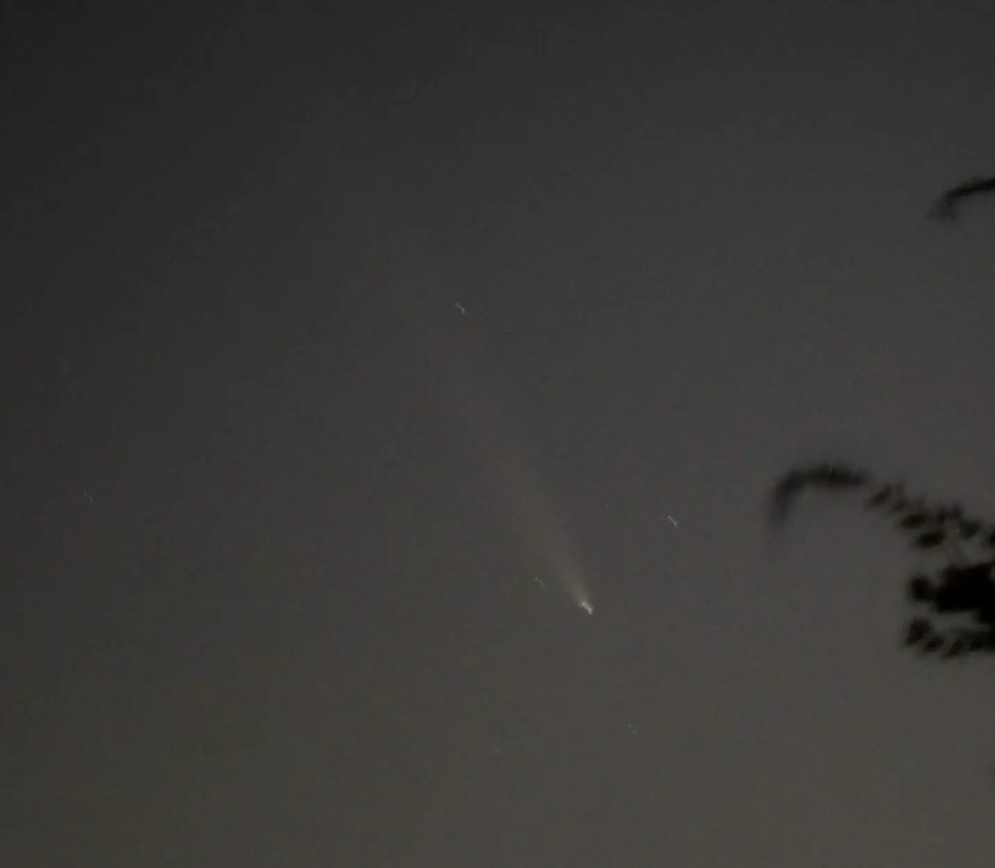 We found the comet; very cool! We found it first with a Night Vision camera mode with my cell phone, and then Travis took a good picture with his fancy camera.