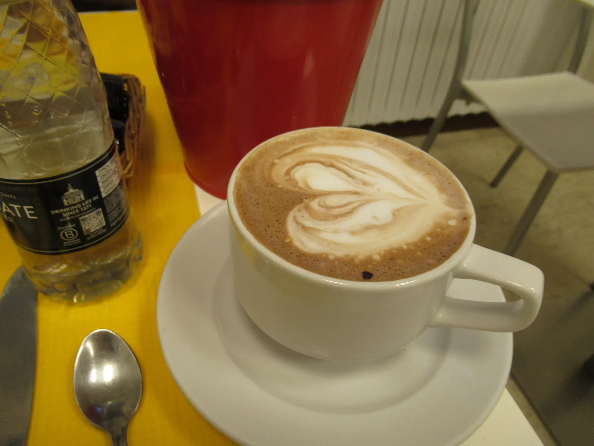 In the morning, breakfast was included; compared to many hotels in Europe with expensive add on breakfasts. The best part was the hot chocolate and Americano coffee from a fancy machine that a lady asked us and made up when we walked in. The table was already set with the food, though there was a little more on another table. It was fancy, but not much choice, but enough. A croissant, other roll, a soft cheese, and toast pre-prepared and packaged. This seemed very odd to me, but we later found it common in grocery stores later.