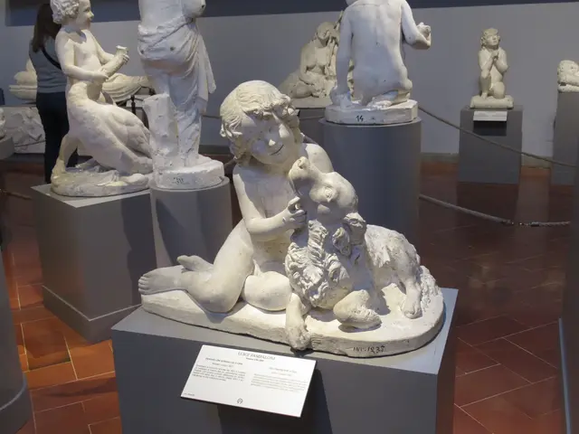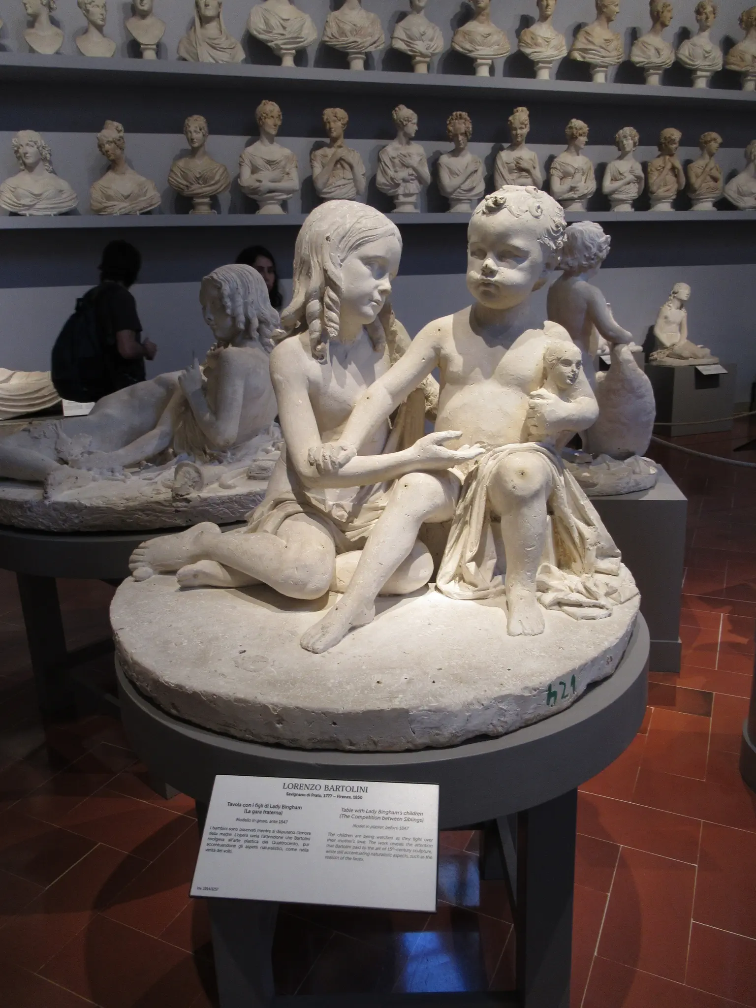 The Academy had art that students were assigned to copy for their studies. In the sculpture room, it was noted to observe the evolution of how they sculpted the hair. I liked the little kid sculptures; I guess that I have not seen many kid sculptures before. These were plaster, and some had metal frame reinforcement sticking out (the black dots if you click in to make a picture larger).