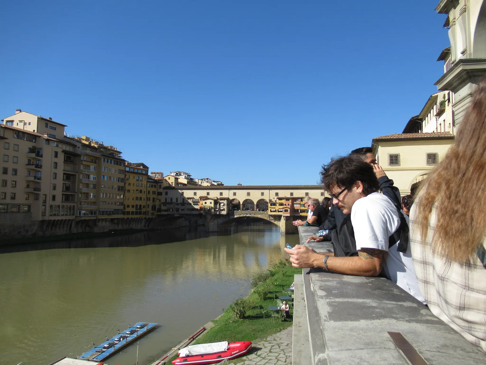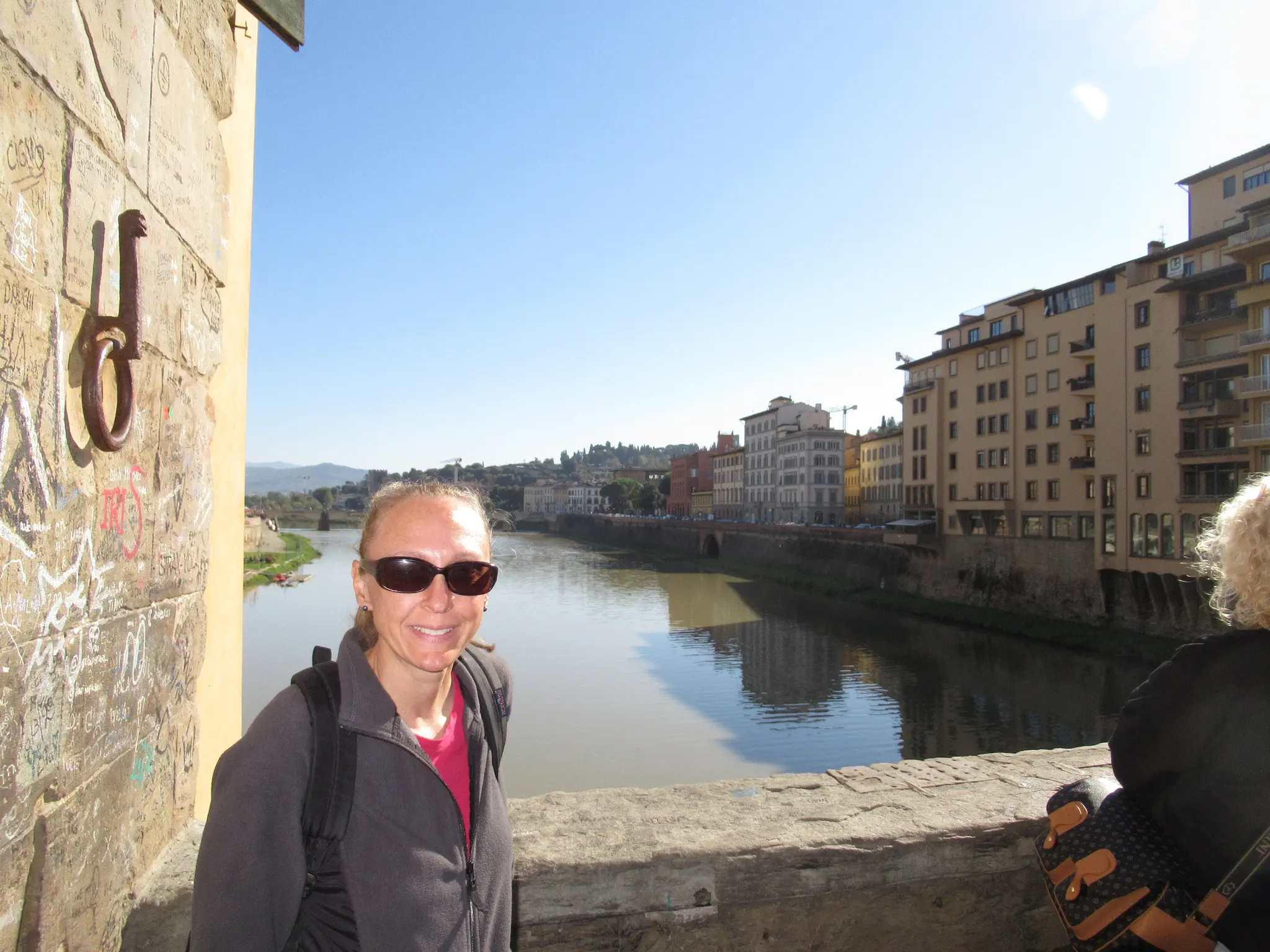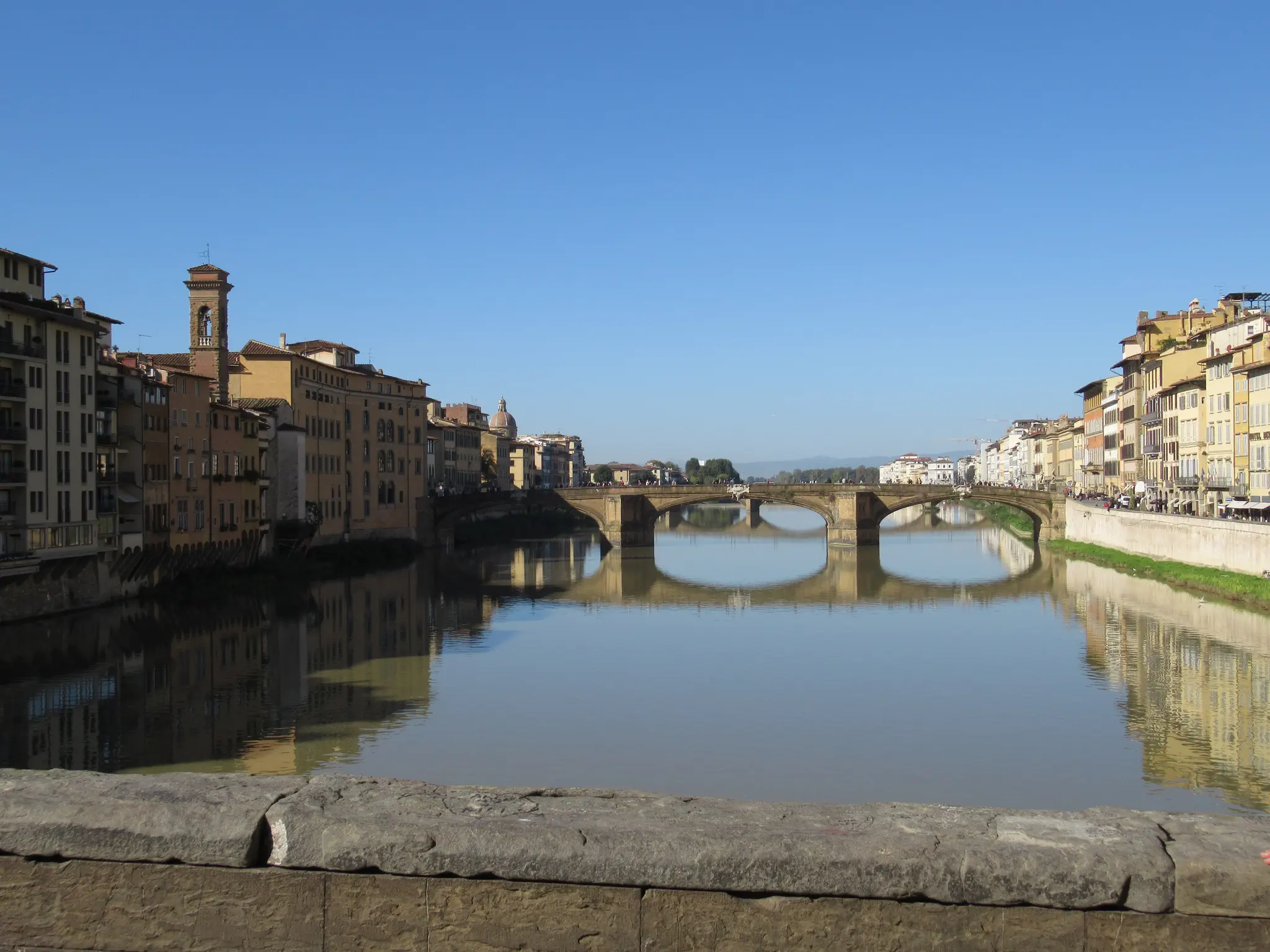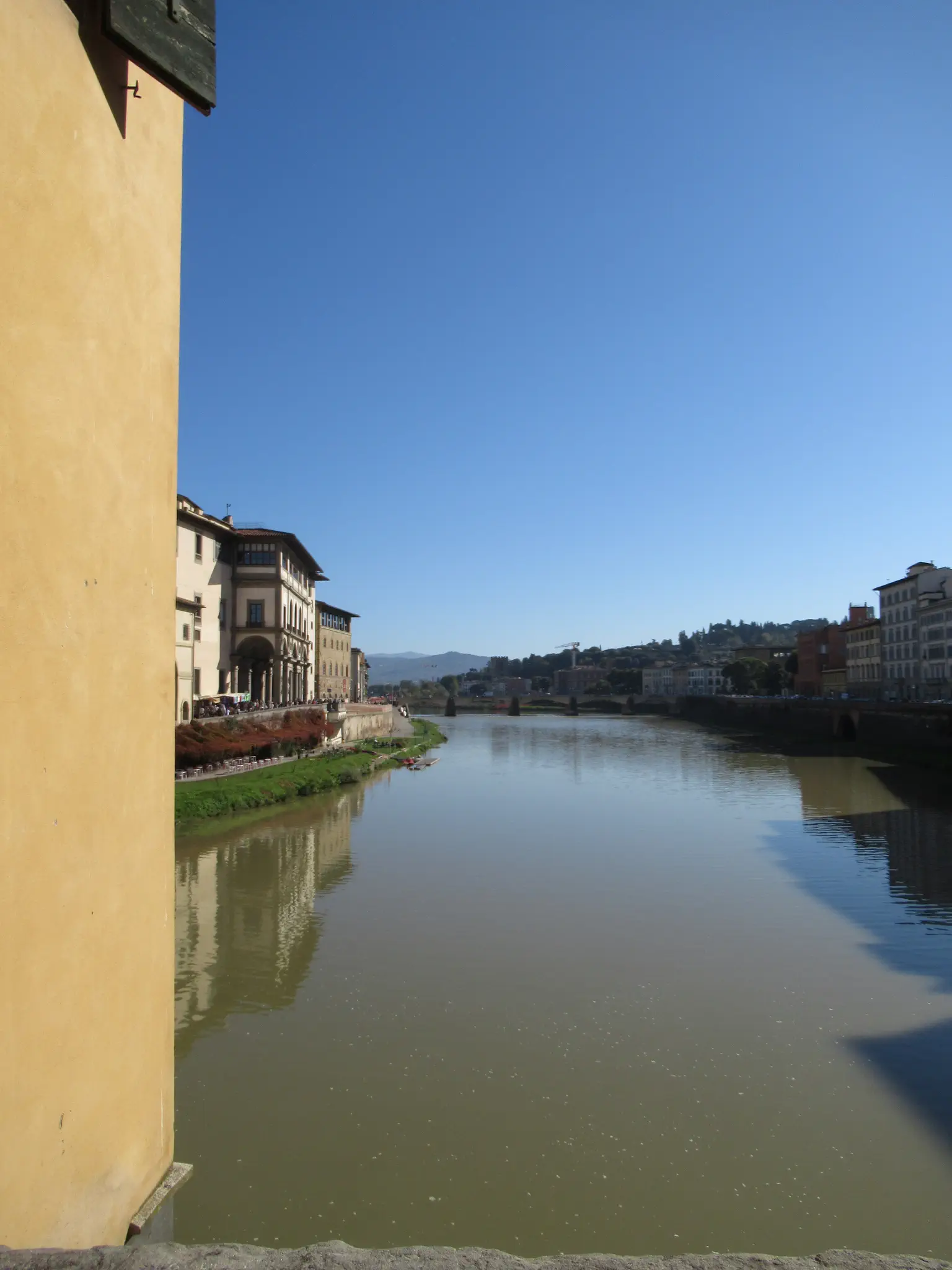 The River Arno and the famous bridge, Ponte Vecchio. I had a 5 EUR slice of pizza on the bridge; it was not good.