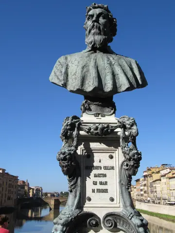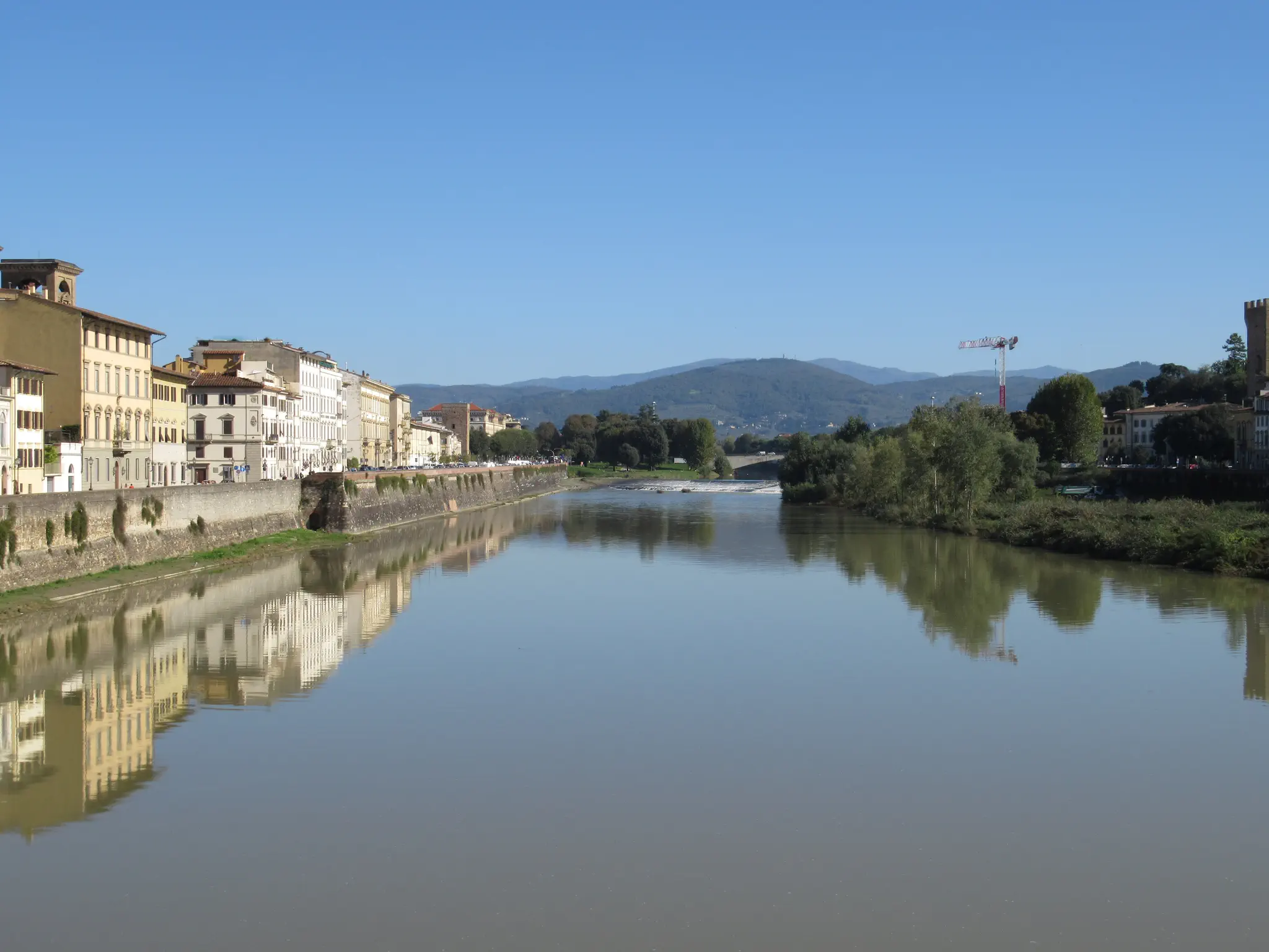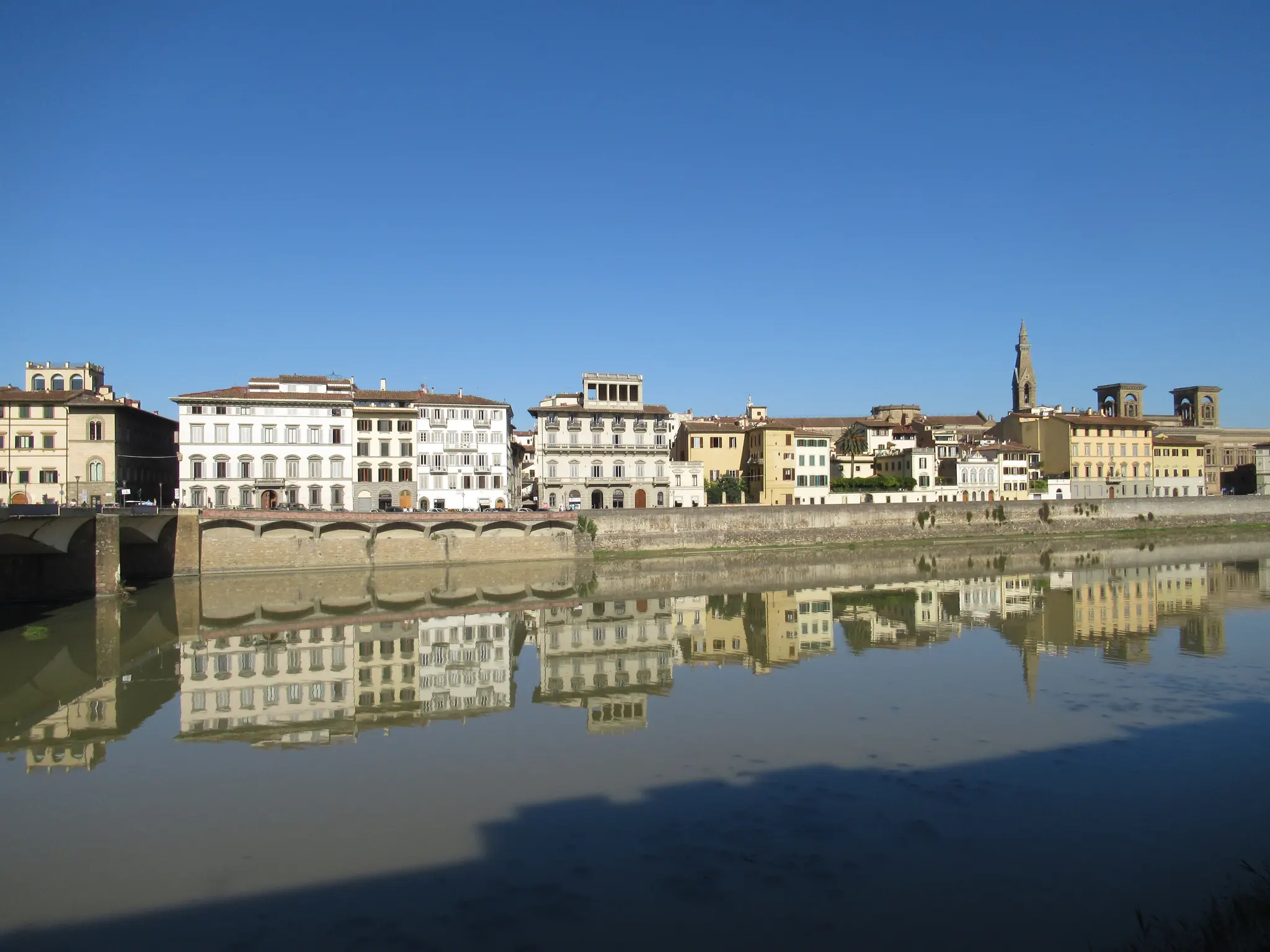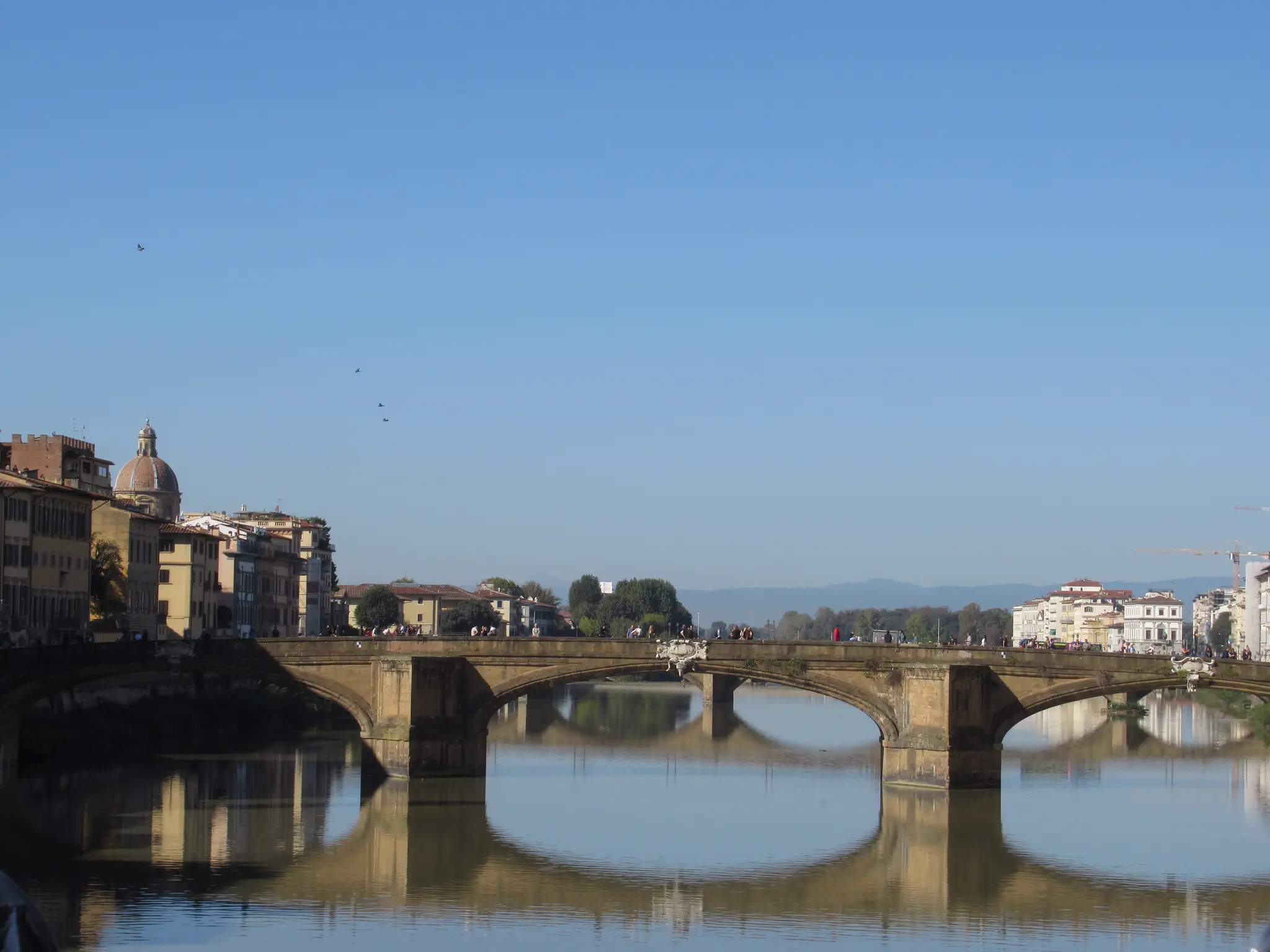 The River Arno and the famous bridge, Ponte Vecchio. I had a 5 EUR slice of pizza on the bridge; it was not good.