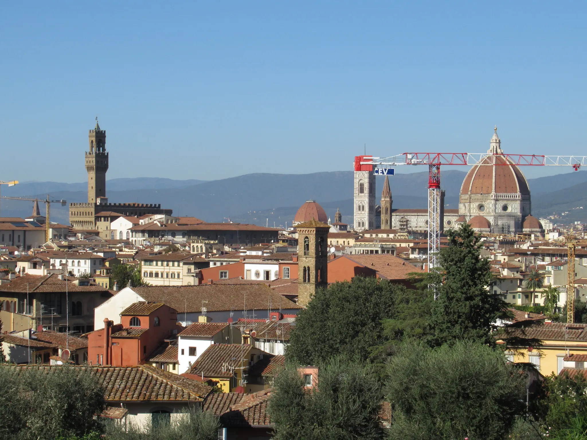 View of Florence from the Rose Garden, which was across the River Arno; it was a nice and a nice view. However, the stairs to go to the top were closed; they would not let us go to the top without going back down, around, and up again. We could see others up there; so close, yet so far.