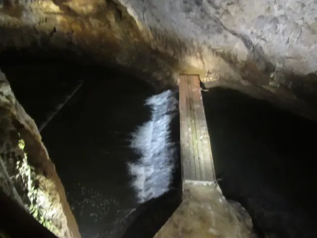 At the end of the tour and cave, they kept baby dragons in a tank, so that everyone can see them. Here is one. There was also an underground river and weir, of course.