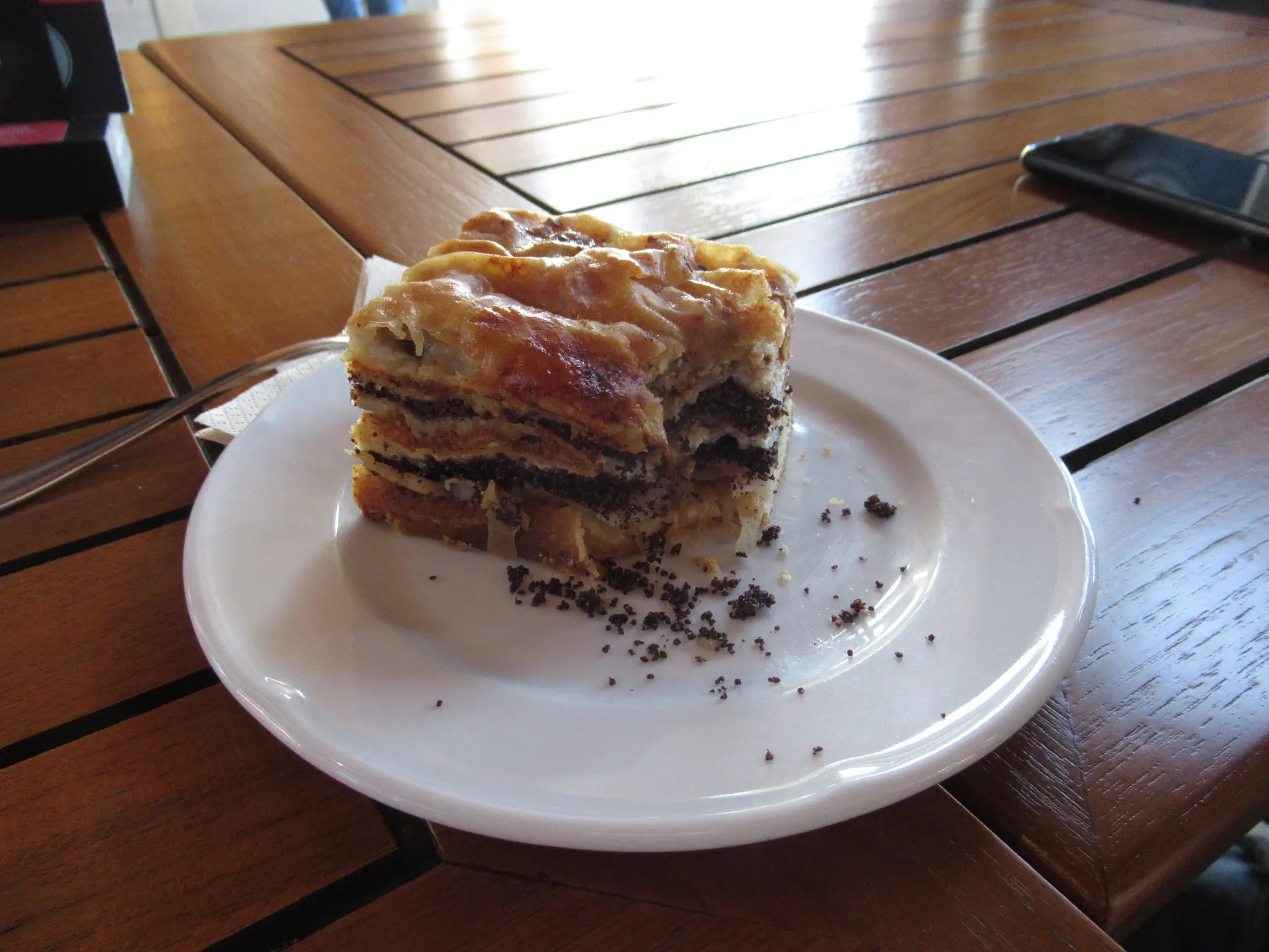 Here is the local cake that we tried, called: Gibanica. It is layers of baked apples, poppy seeds, phyllo, and cheese. Travis liked it. I did not, but I don't like cooked apples in pies or cobblers either.