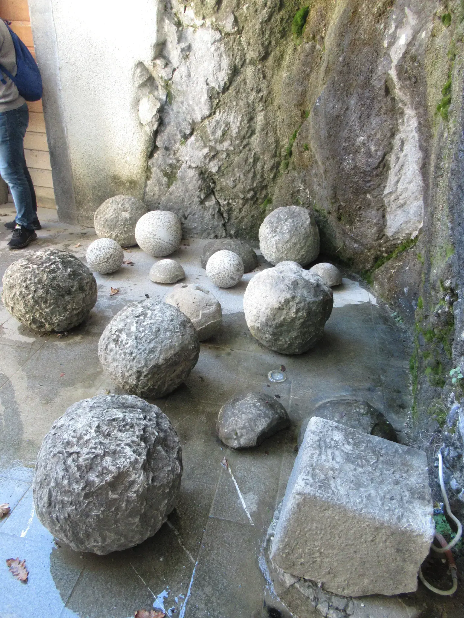 This is the water collection system. From the audio tour, it sounded like this was also a way to protect the residents; by collecting their own water, they knew it was not poisoned. Sample cannonballs or catapults shot at the castle.