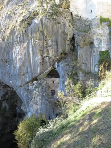 Then we were back on the bus at the defined time and had about a 10 minute drive to the Castle. Before, we tried to get the Scot to recommend good things to see in Scotland, but he was not much for pushing tourism in his country. The Castle, called Predjama means Pre-Cave Castle. The Castle was built into the cave. Our guide told us to get the audio tour, included, by saying that we were in the Dragon group. The Castle in the cave. The owner was shot with a cannonball while on the loo. Someone on the inside ratted out that he was currently on the loo and got him killed.