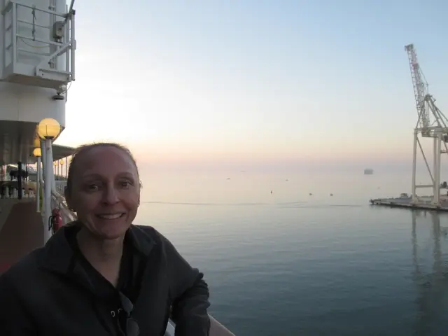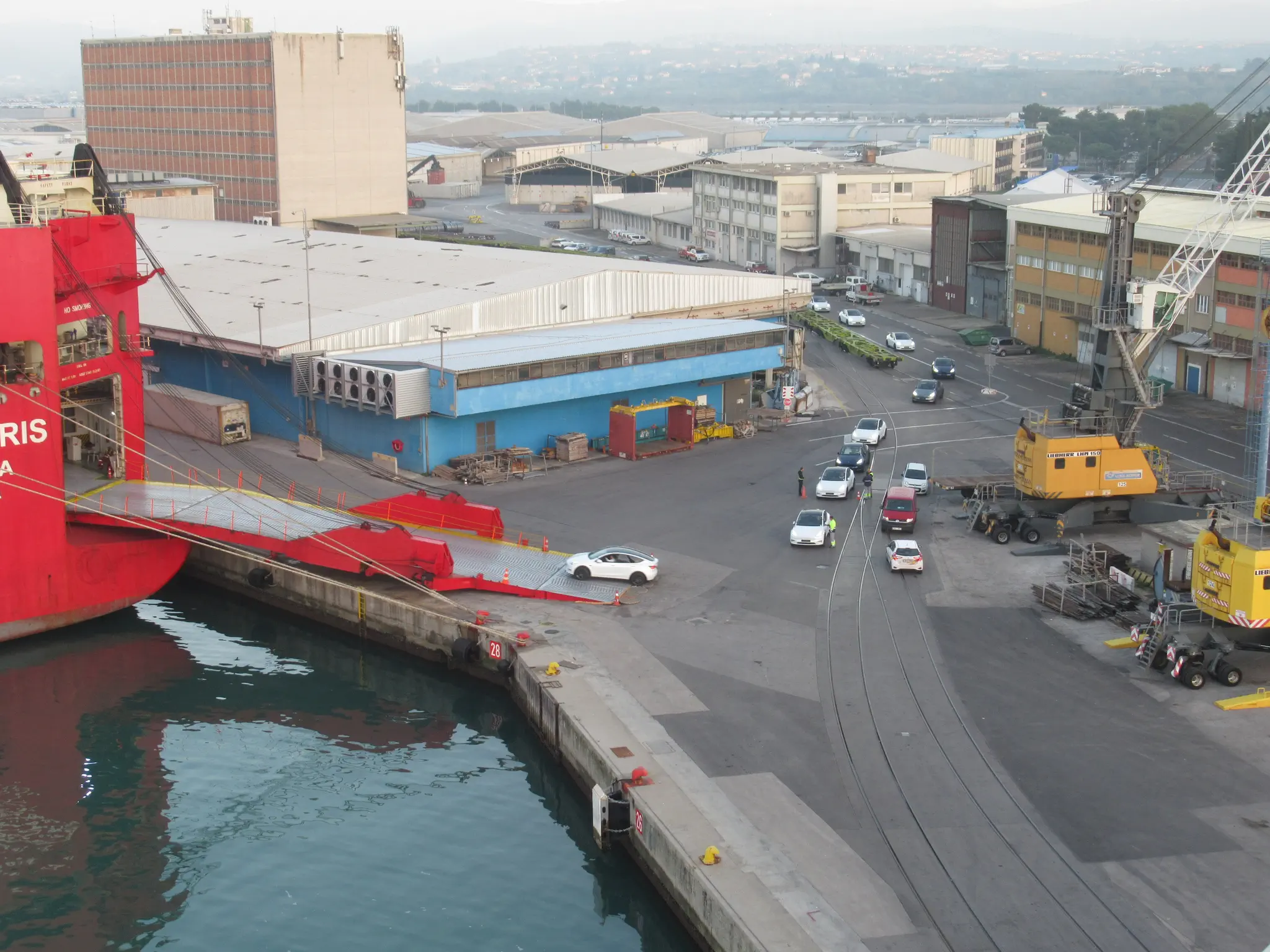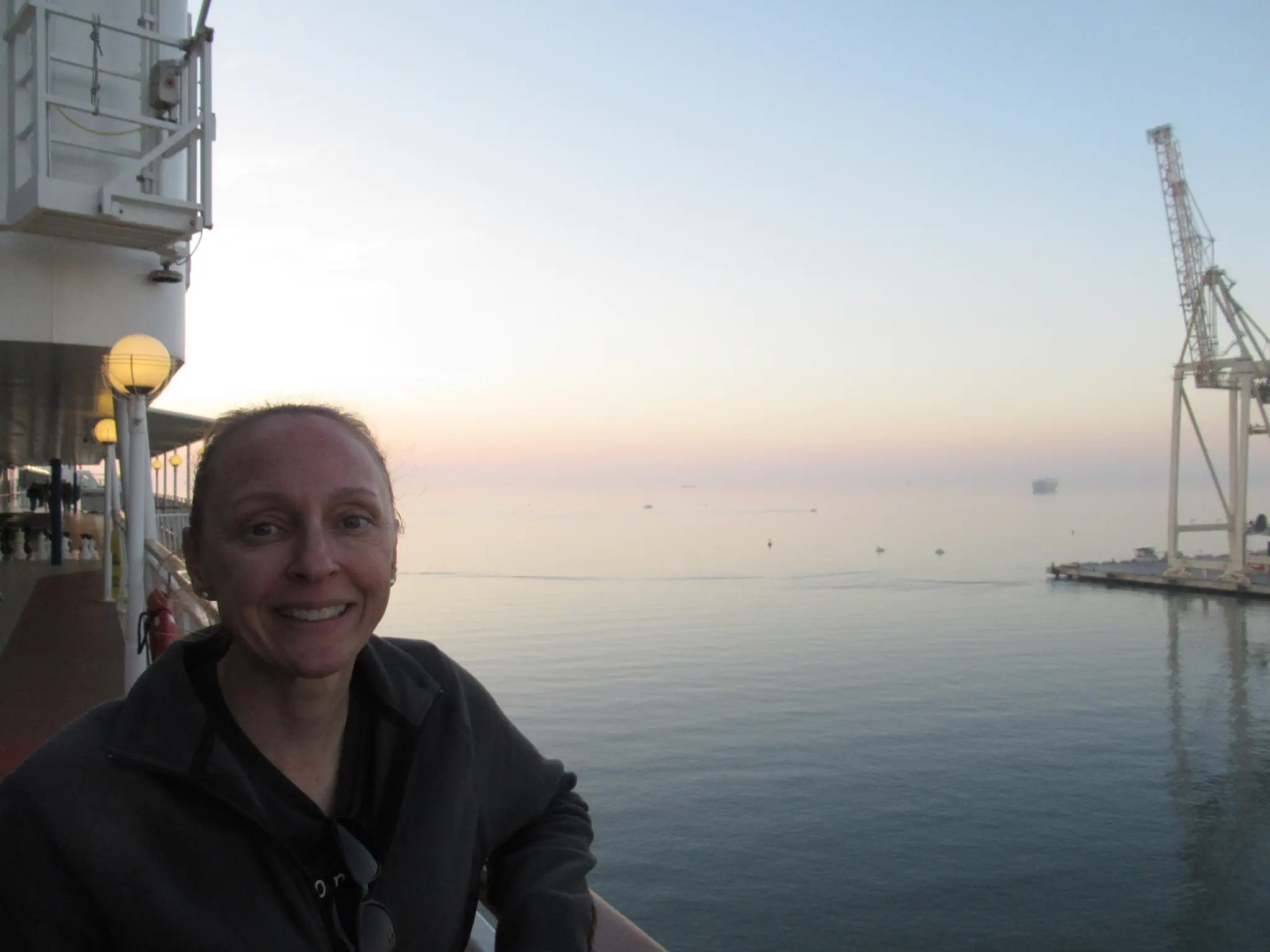 Back on the ship, enjoying the Great Outdoors' afternoon snack. They had cookies on this cruise, but they were not very good at all -- definitely not their usual. I hoped that it is just because people in Italy like hard cookies (this is what we saw in the grocery stores) and not the new normal to make people not eat them (I have also seen the plates full of cookies when they put them out). The cookies were hard without much favor. From the Great Outdoors, I noticed that all the cars loading onto the ferry looked the same. I looked with the camera zoom, and they were all Teslas. Where are all the Teslas going? Then a pretty (and early) sunset.