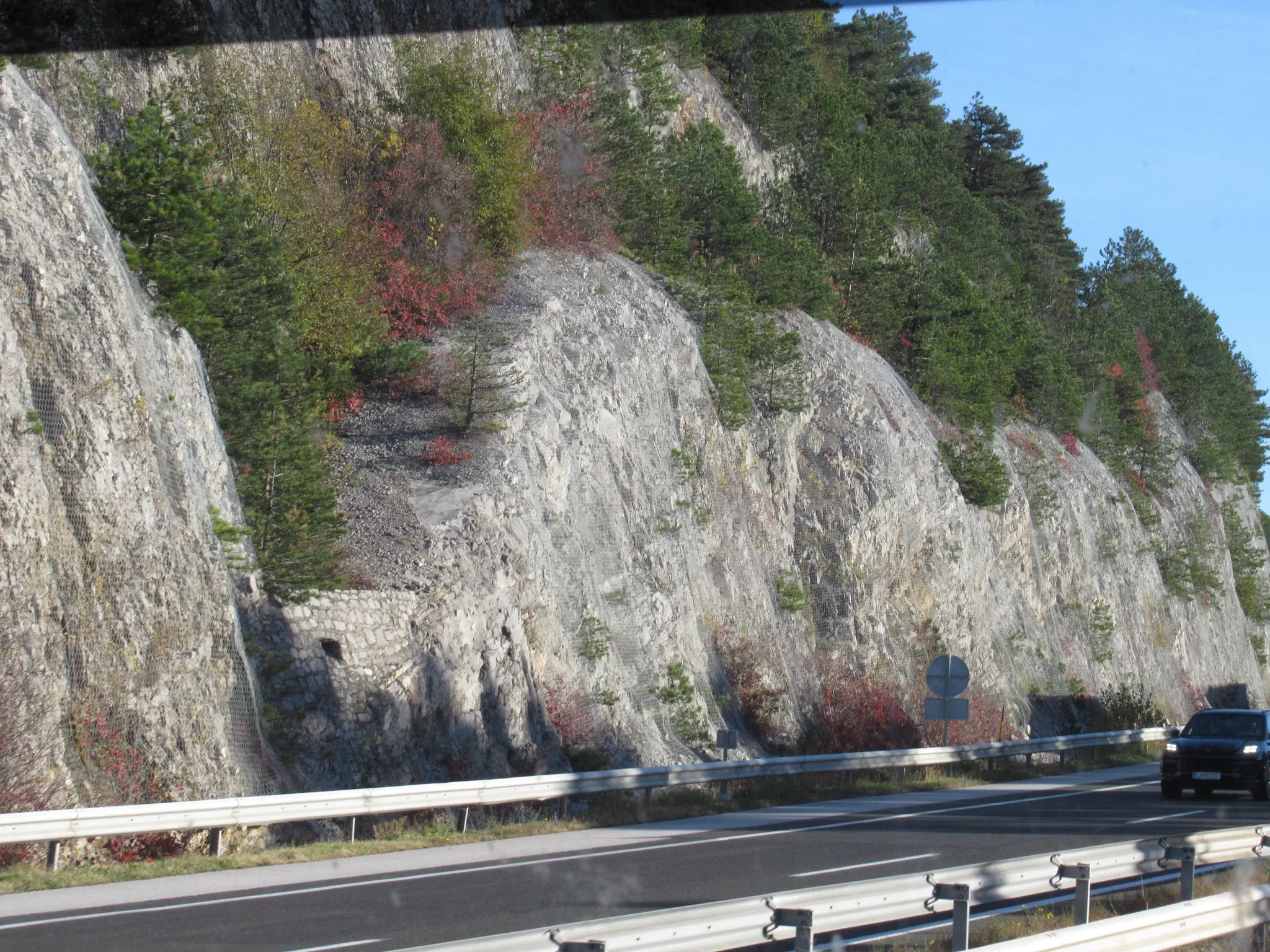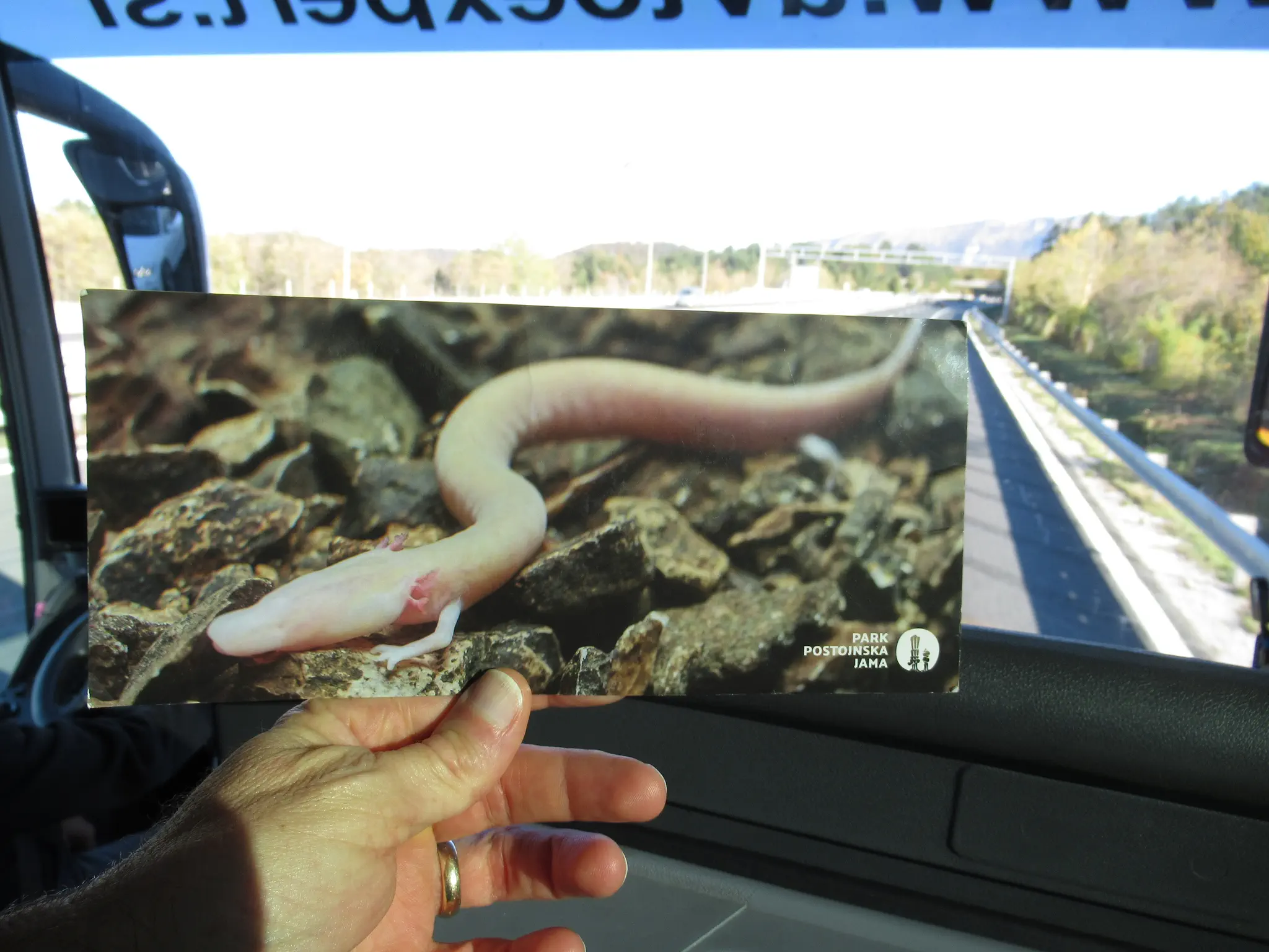 We pre-booked the Postojna Cave and Predjama Castle Tour with Koper Tours with our Cruise Critic role call group. Koper Tours asked that we make a deposit payment. We arrived early for the 8:30 am meeting time, paid the balance, and met our guide and group. It took a little bit to leave. I think they were waiting on a group, but then moved a lady from a different tour to ours. Our tour guide was energetic and fun. She had a green Dragon on a stick for us to find her. Slovenians are very proud of their country; she noted it had "love" in the name (though Travis first guessed "oven"). She had a story about the Slovenian ruler telling God that he will take what God choses to give this country vs. other countries saying that they want volcanos or waterfalls. So, they were blessed with so much beauty. It was a very beautiful country, and everything was so green (compared to hot and dry Texas...). We got to see mountains, some fall foliage, and rocks walls on the drive to the cave -- though hard to get good pictures from the bus, so just sharing a few. Someone noted later no litter. He was right; the country was so clean. I was later disappointed in all the litter in Sicily and Rome later. I have since heard a podcast about other places to visit in Slovenia; I'm SO ready to go back!