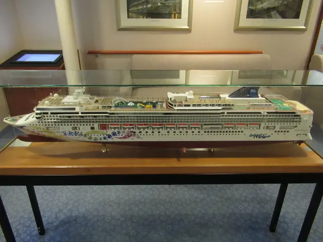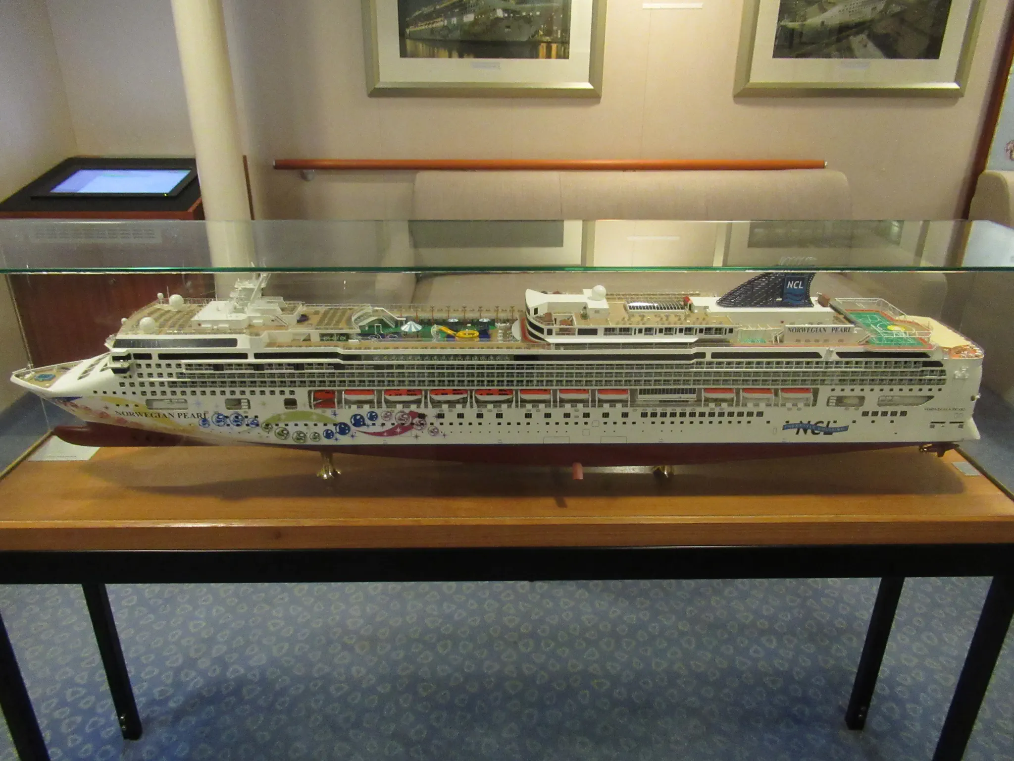 A visit to the bridge viewing room, deck 11, forward. This day the bridge windows were closed with a red zone alert sign up -- hopefully just for the sail in and docking, but they have screens that show location and traveling data like they have on the bridge that are cool to see.