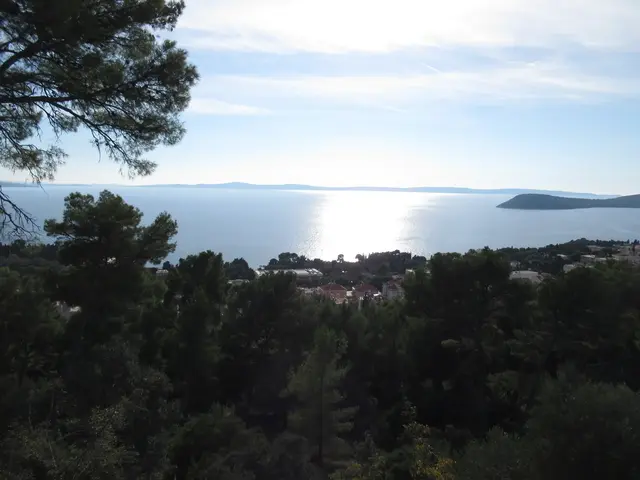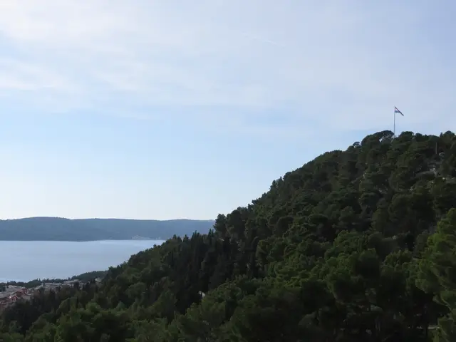 These were the stairs that we started the hike up to the Forest Park Marjan. We got good views from the hill of water on both sides. There were many trails. There was also a botanical garden, but it did not seem open at any of the entrances/gates that we saw -- bummer.