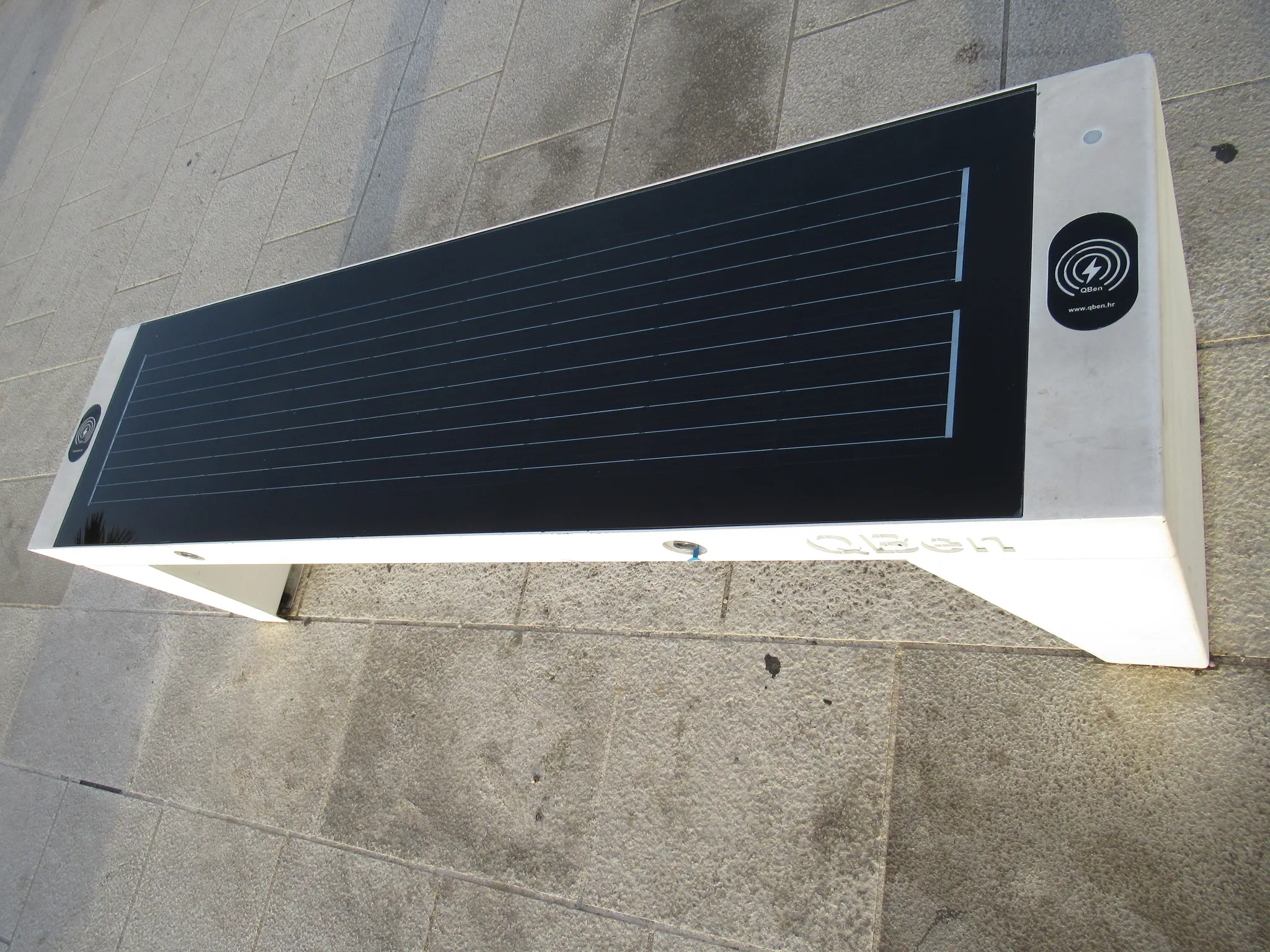 Walking to and from the port, we walked through a ferry loading parking lot. These benches were cool; they had a solar panel to collect power and then allowed people to charge with contact or a usb port.