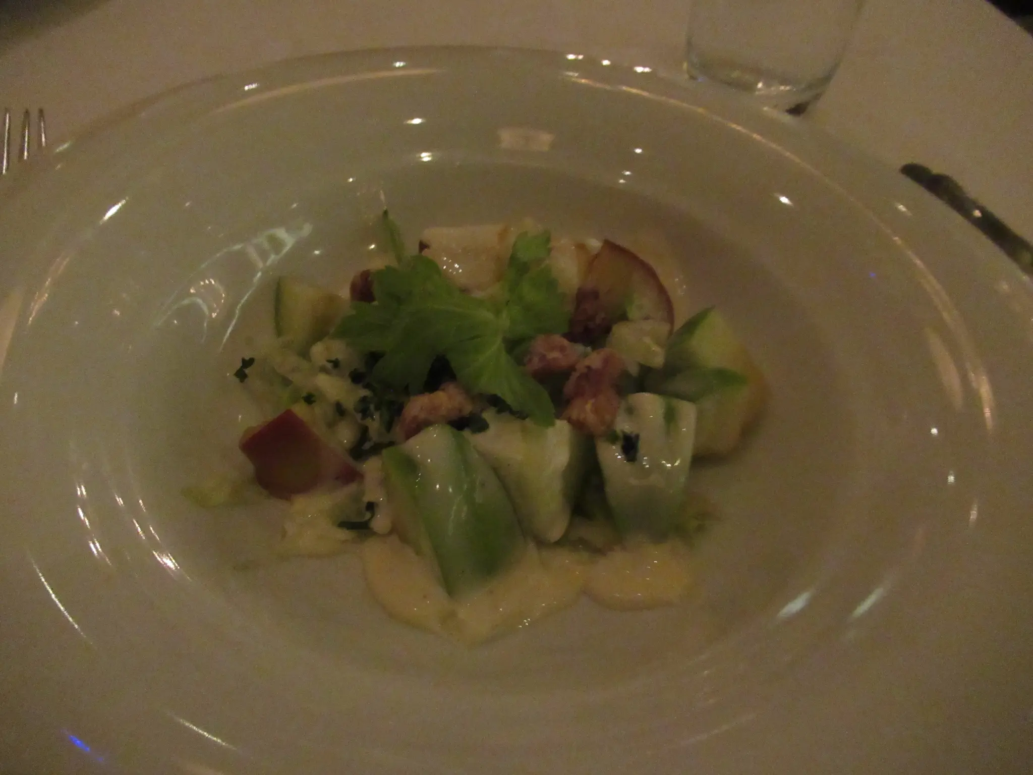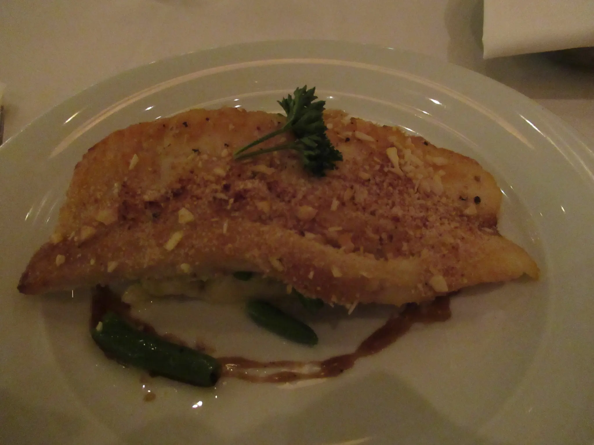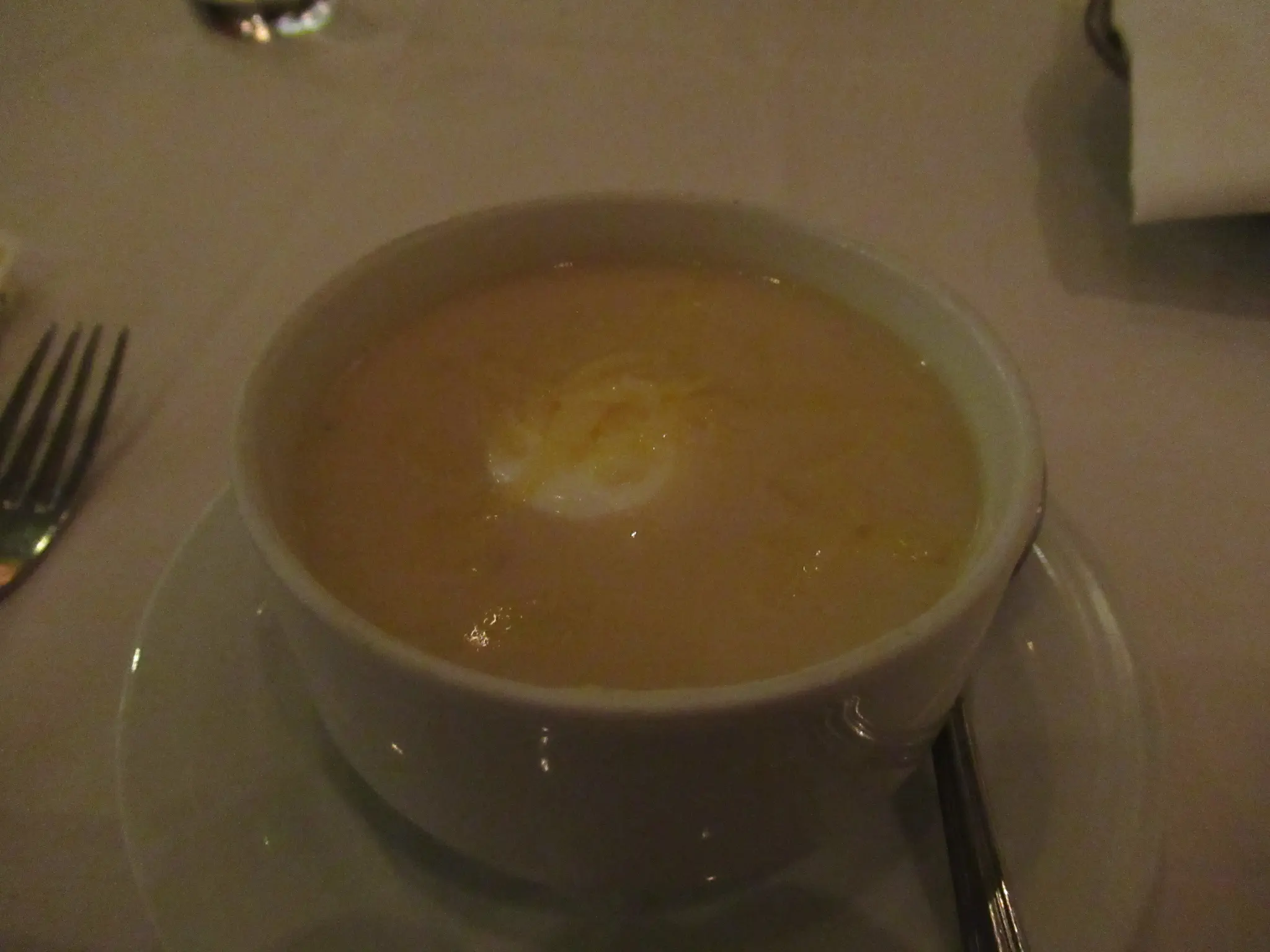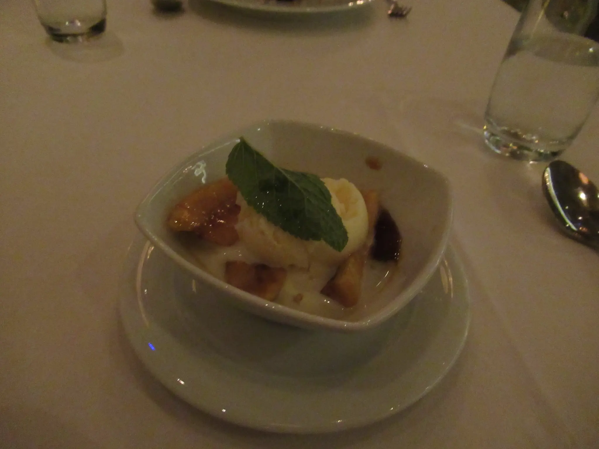 First night for MDR tonight; we only went to the Summer Palace MDR in the apt. We never make it to the Aqua MDR in the mid. Summer Palace opens earlier and is more elegant. Aqua is less formal with closer tables and noisier (from experience on other ships). I had the white cheddar and potato soup; lots of cheese make it good. For the main, I had the Hoki fish; it was not so good and a brownie s'mores that was very good. Travis had the Waldorf salad, Chicken Madeira, and bananas foster.