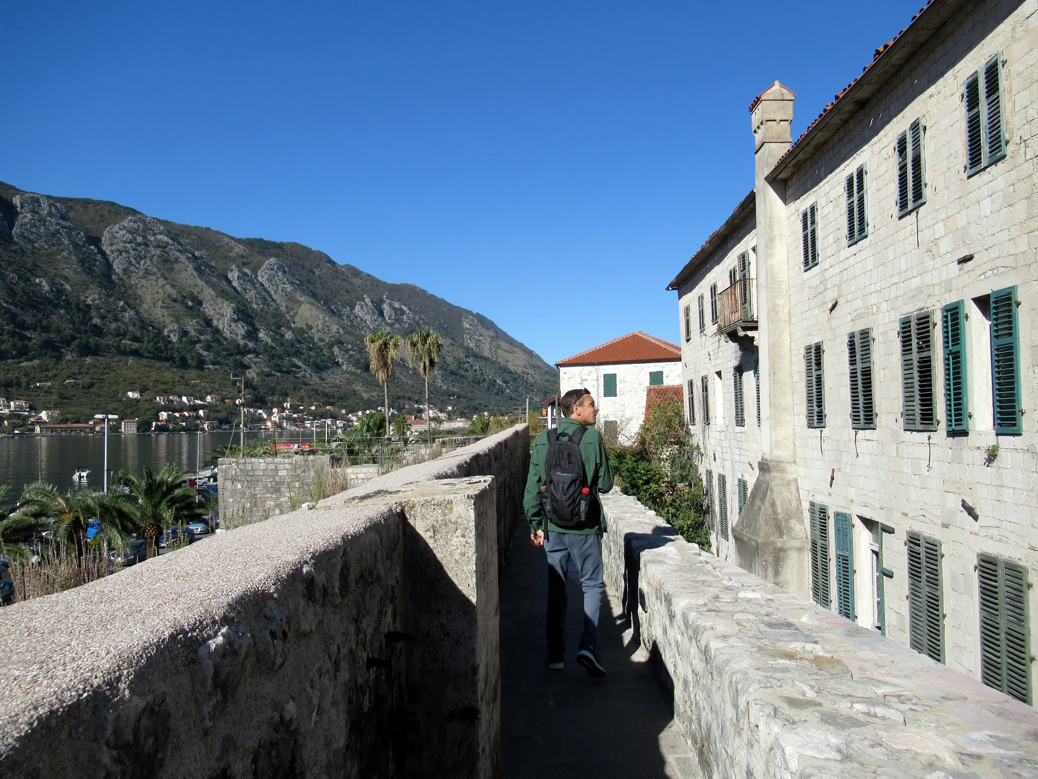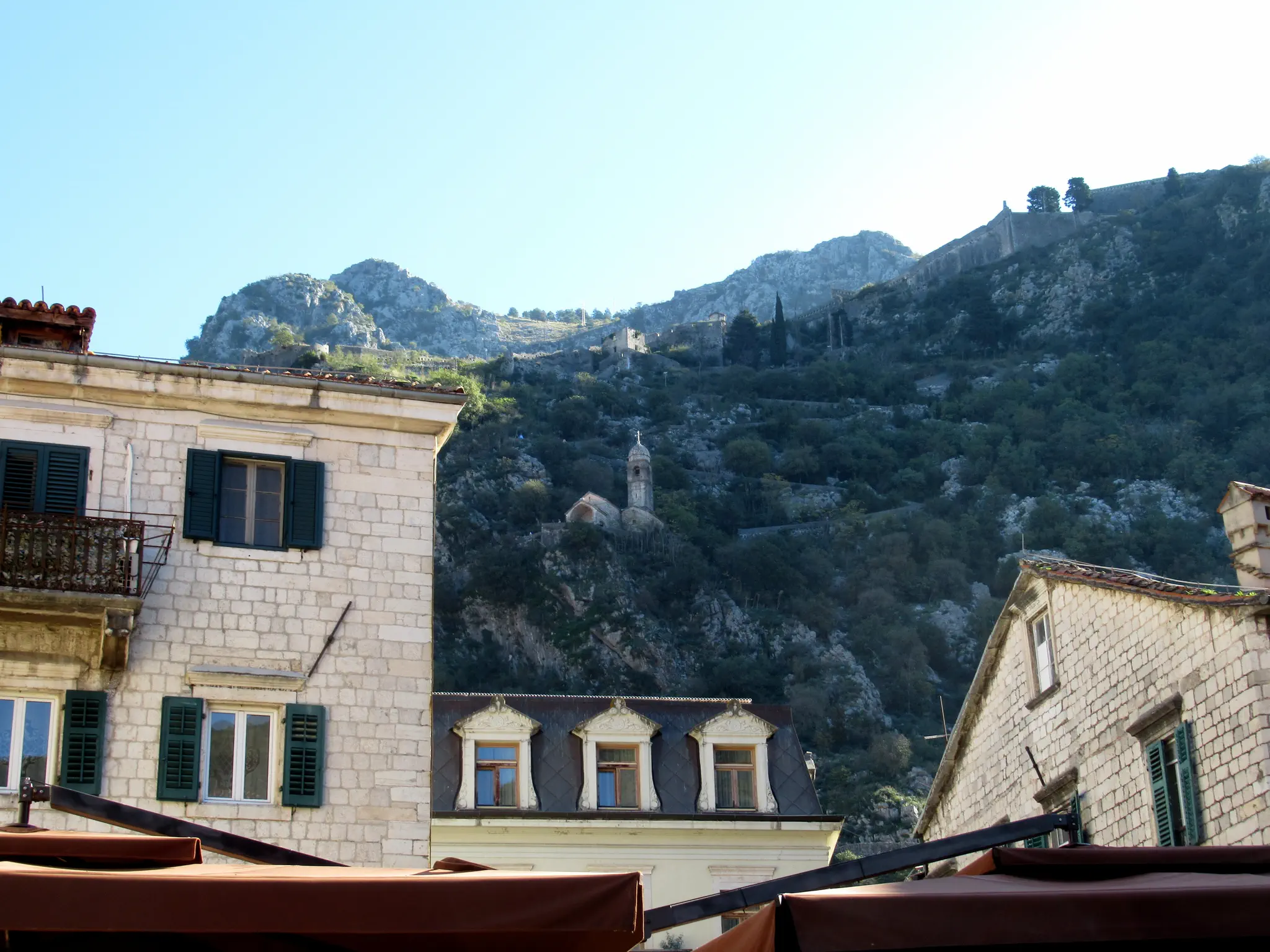 Moving past tendering, Kotor is at the of end of a fjord, so like experiencing the Norwegian Fjords -- very pretty. The tender ride was also pretty. Kotor also had a walk the walls, like Dubrovnik. There was a paid and free option. We originally planned the free, but after hiking/stairing up the last two days, I was not up for it for a third day. Also, because the free walk had a challenging window to climb through, that used to have a ladder but no longer did, where people reported human excrement in the area -- the lack of restrooms, I assume, but did not sound pleasant. The goal of both ways was to get to the Kotor Fortress on the top of the hill.