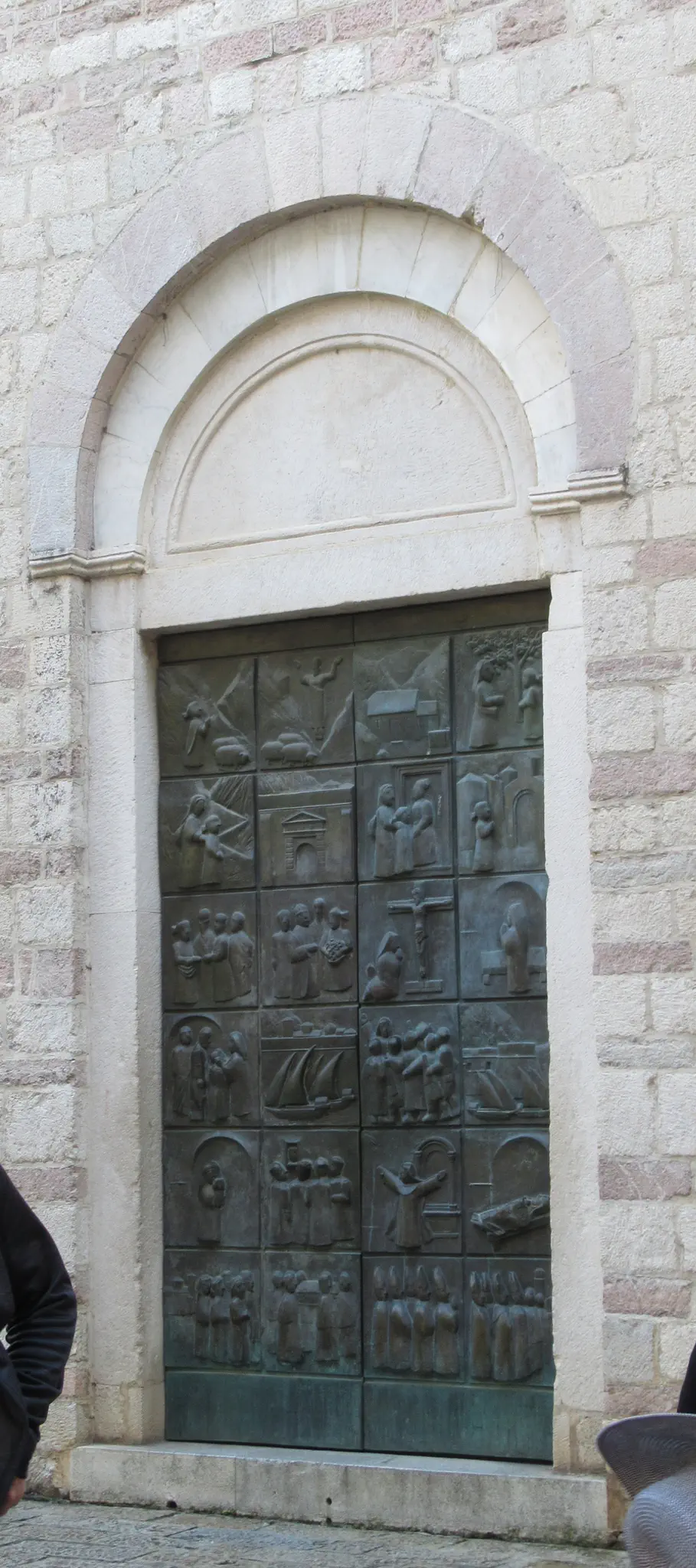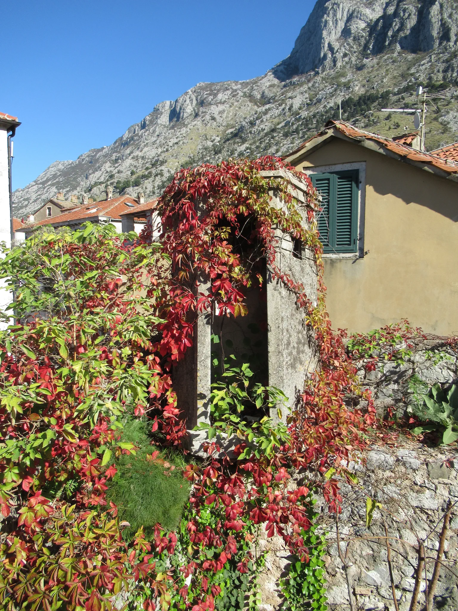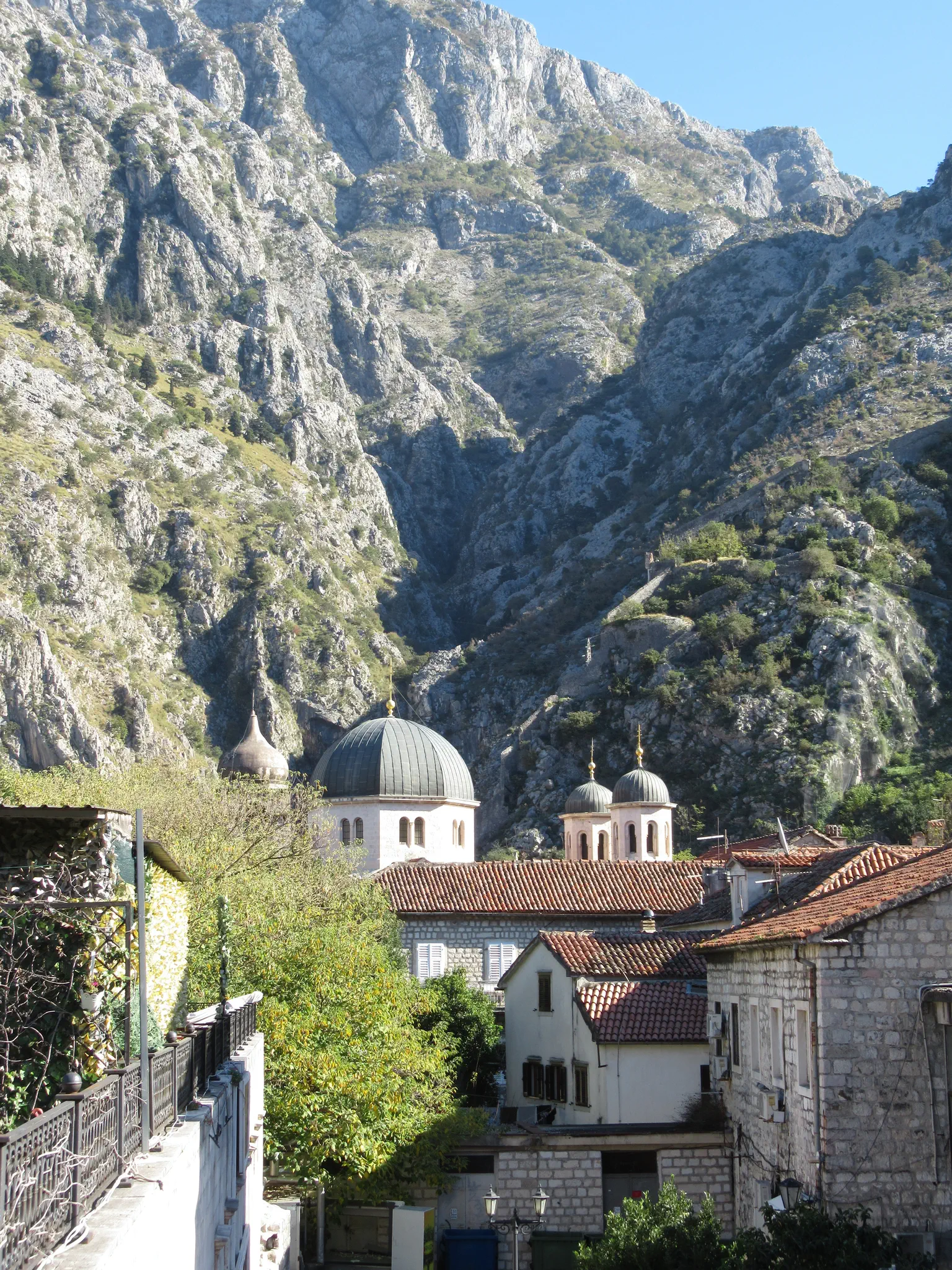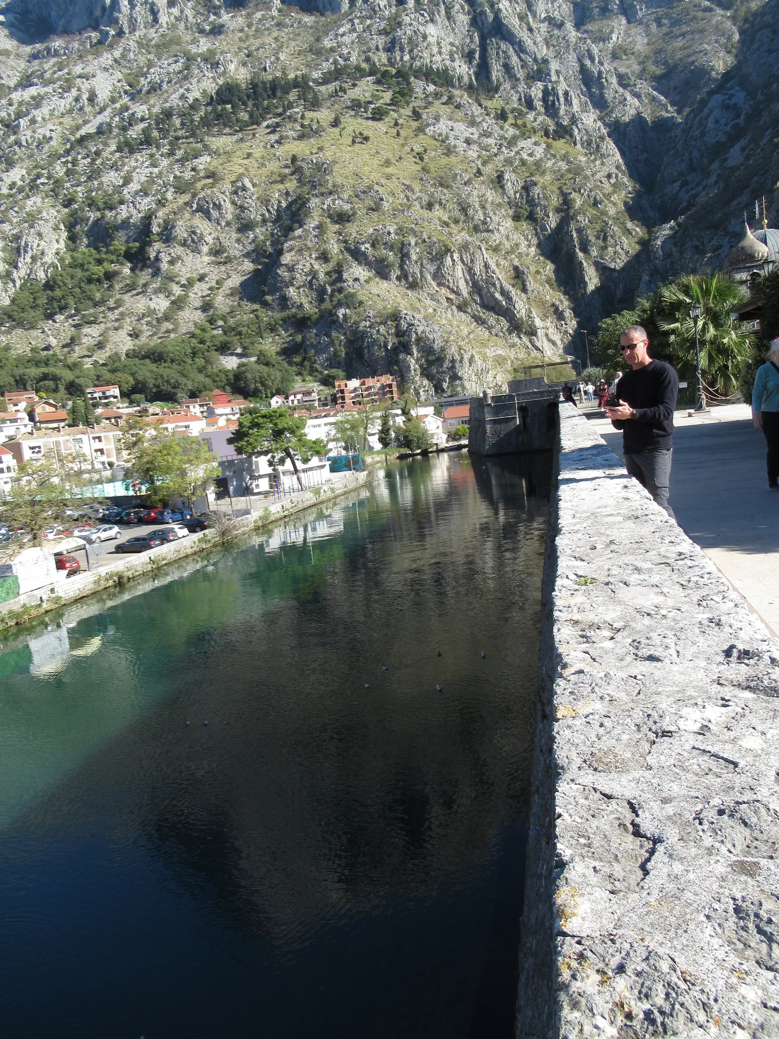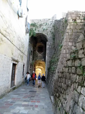 I believe that the walk went up that mountain; we could see hikers. I wondered what time they got started, especially since tendering took some time. We found some free walls to walk on that stayed closer to town, which are called Kotor City Walls. There was a nice old town area, enter through Sea Gate, with a view of the church in the hills and a model of the town and mountain.