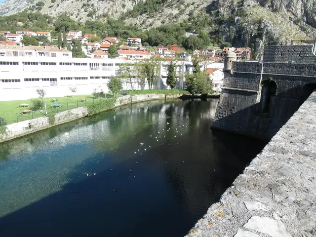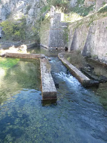 We arrived at the Scurda river beside the old town walls; there were a ton of seagulls chillin in the water.