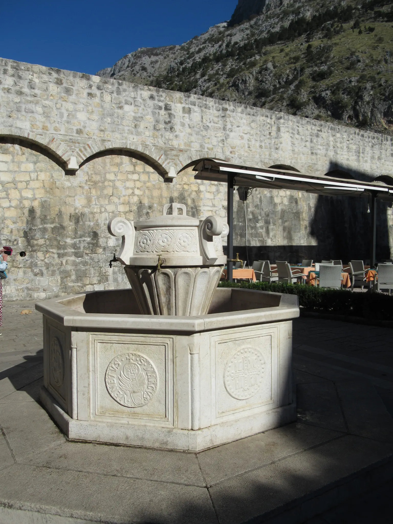 We stopped by a grocery store and then reentered the old town to see more. In a guidebook, there was a war museum, from the Yugoslavia breakup wars, mentioned that I wanted to go to. However, it looked no longer in existence; we could only find the Maritime Museum. I should have planned this better because we were also in Croatia. The old town water fountain, Old Fountain Karampana.