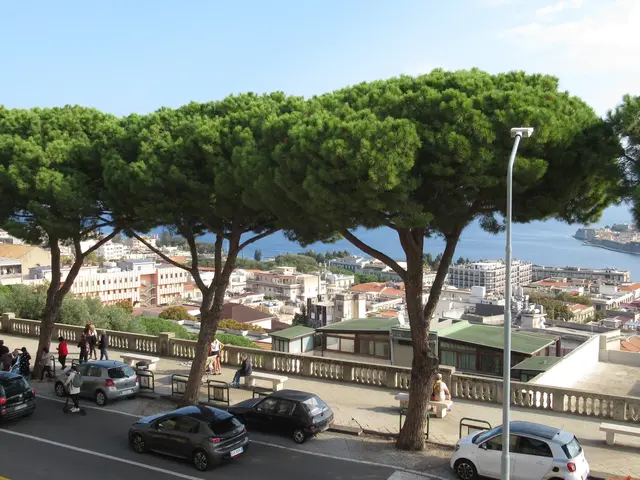 View from the church grounds. I liked these umbrella trees, as someone called them.