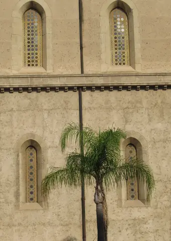 I liked this palm tree against this building; it looked very Mediterranean or rather North African to me.