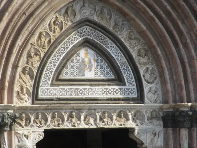 The performing clock/bell tower. It was neat, and the cathedral was very pretty. Look at that detail. There were many vendors in the square while people gathered for the noon show. The lady next to us kept getting approached. I went to her and said that we were going to stand further from them. They must have looked like sure buyers of scarves.