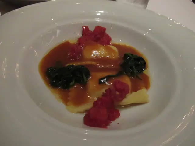 For dinner, we had the MDR tonight. Travis had the ravioli with lobster sauce, and I had the Caesar salad. This used to be my favorite but is sort of disappointing now; maybe my taste has changed.