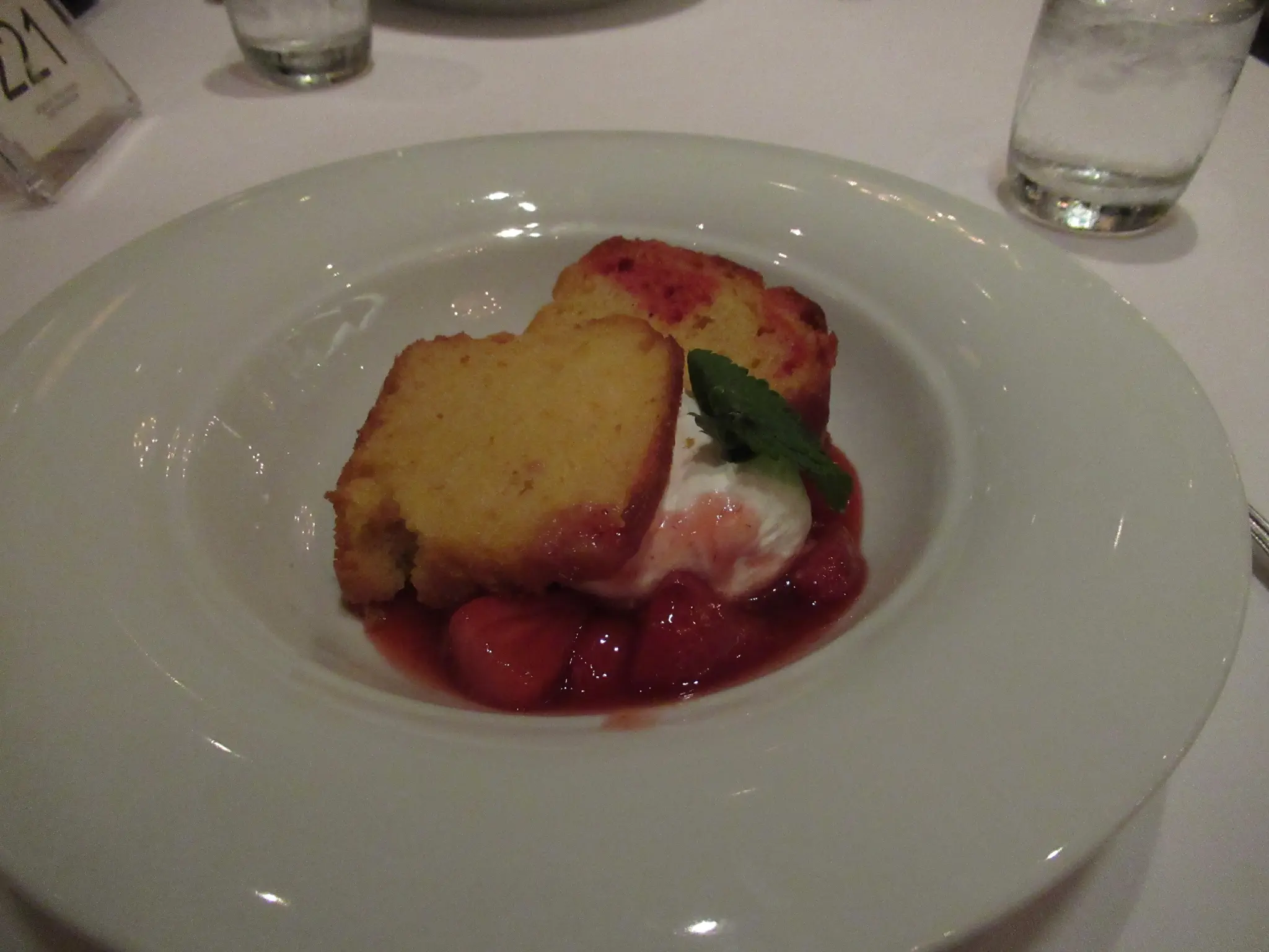 For dessert, Travis had the strawberry shortcake, and I had some kind of chocolate cake. The icing was gelatinous that I did not like, so pulled it off.