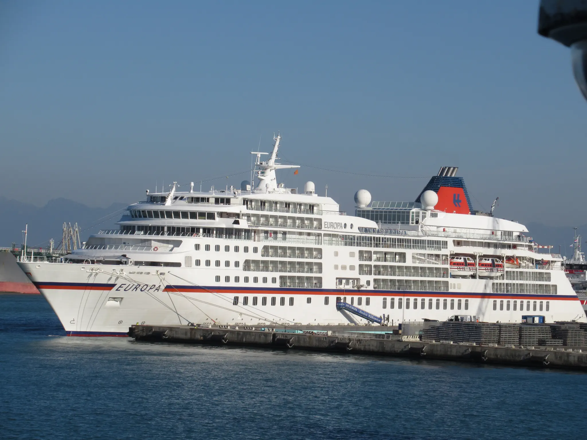 We had an interesting friend in port with us -- a Hapag-Lloyd cruise ship! I knew that they were a shipyard and built for other lines, but I had never hear of the Hapag-Lloyd cruise line. Is this where they test out design changes? We got a couple of shots of the city since we did not go to it.