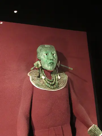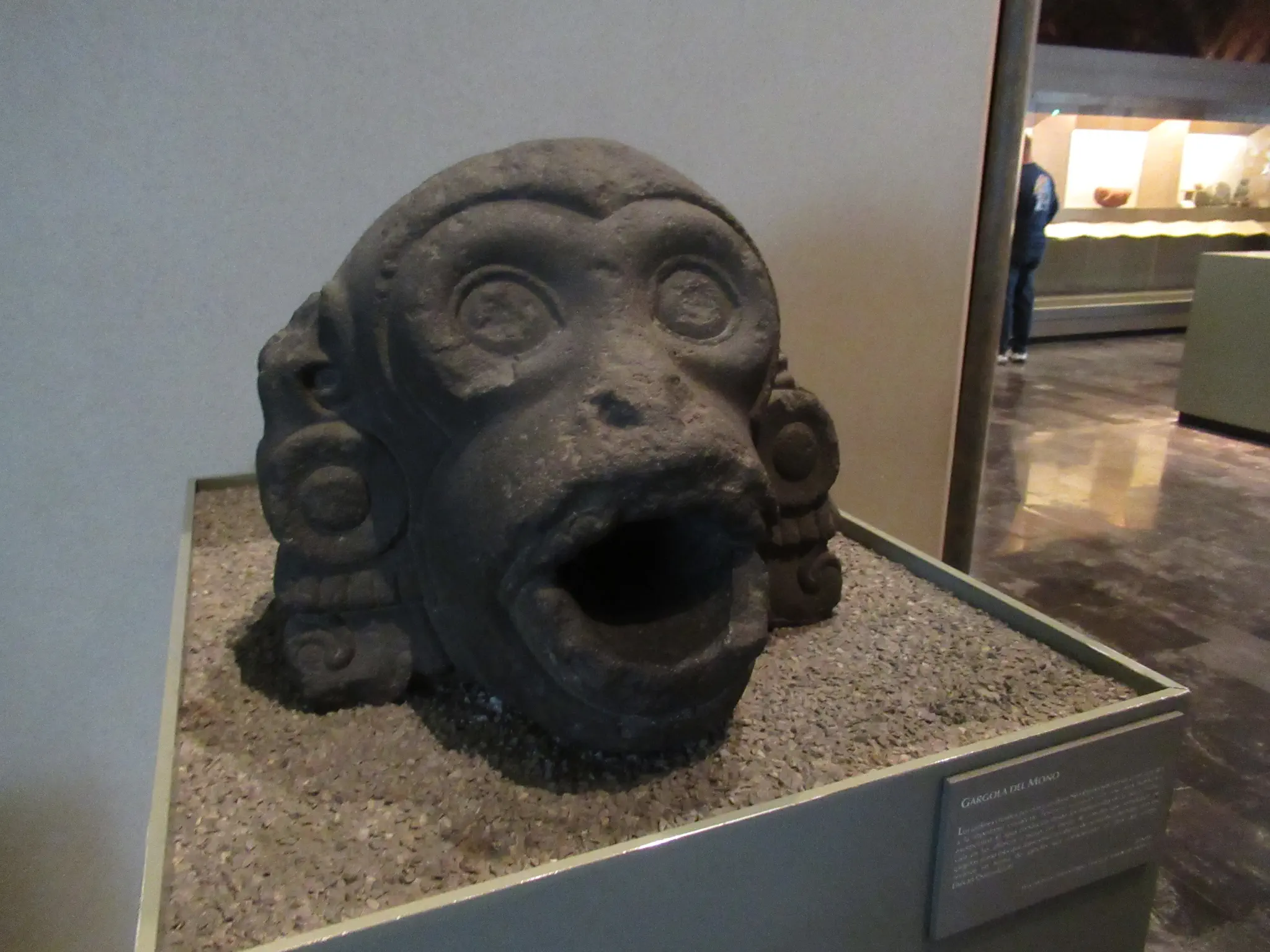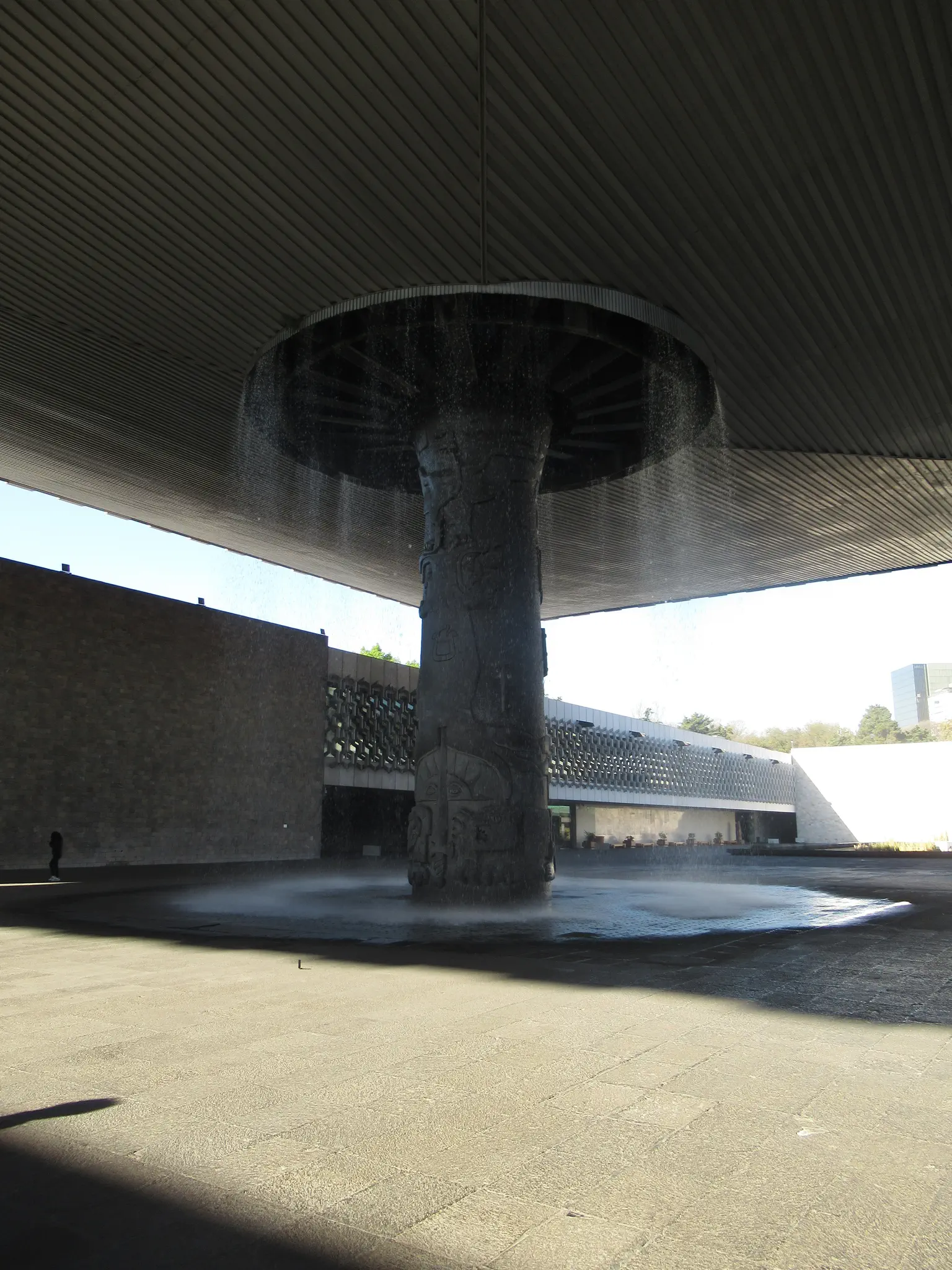 Inside we went through security, visited the restroom, checked the bag, and bought tickets. It was not crowded at first but got crowded later. Nice waterfall outside the museum. The museum was broken up by civilizations, so you had to know what civilization what you wanted to see was in. The app/website did not tell where something was. This was a little frustrating. I wanted to see the Aztec Calendar or Sun Stone first; it was all the way to the back from the entrance. The galleries were in U-shaped buildings around the fountain/waterfall courtyard.