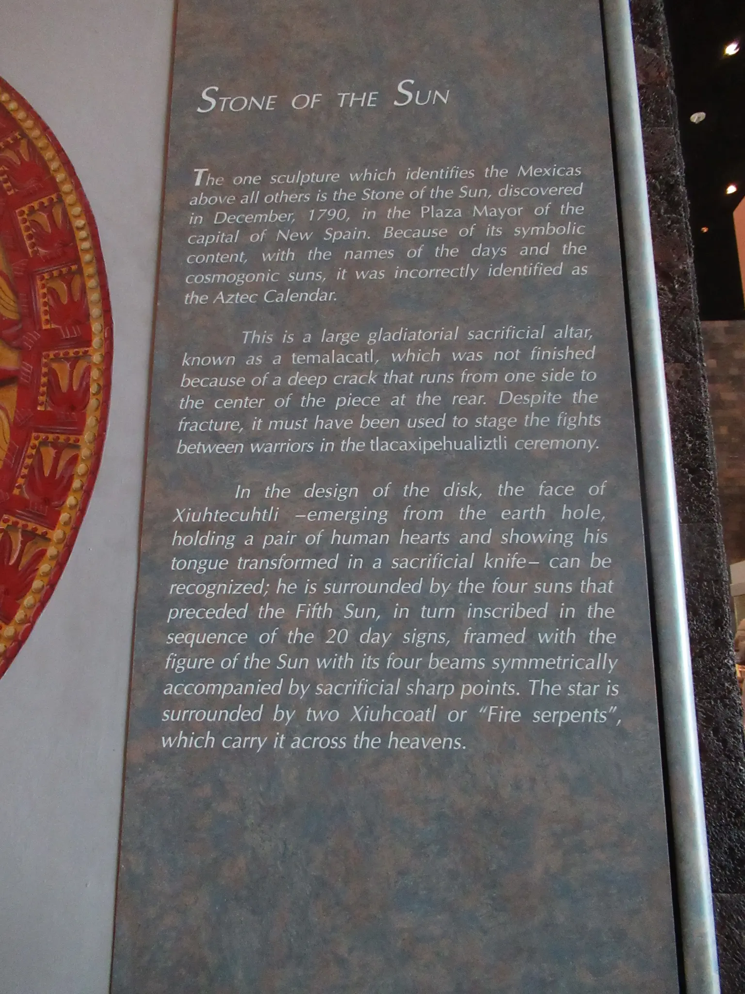 The Sun Stone, info about it, and what it looked like when originally in use and color still intact.
