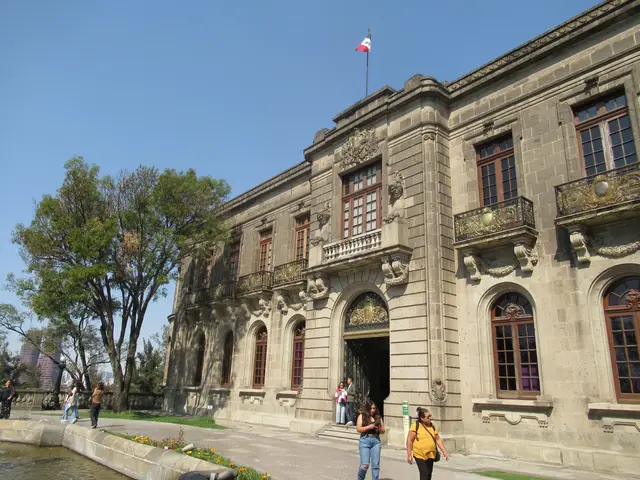 We then hiked up to the Chapultepec Castle; you buy the ticket at the bottom before hiking up. This is important because when you buy the ticket, you don't know the no food or drinks in the castle rule. This had us scrambling twice. The first check at the start of the hike required no food, but water was okay. At the top, no water was allowed. We drank our extra, hotel provided water bottles and threw them away (in front of the security team), and then for our airplane bottles that we did not want to toss, Travis looked up "empty" in Spanish to say that. They accepted this and could see them.