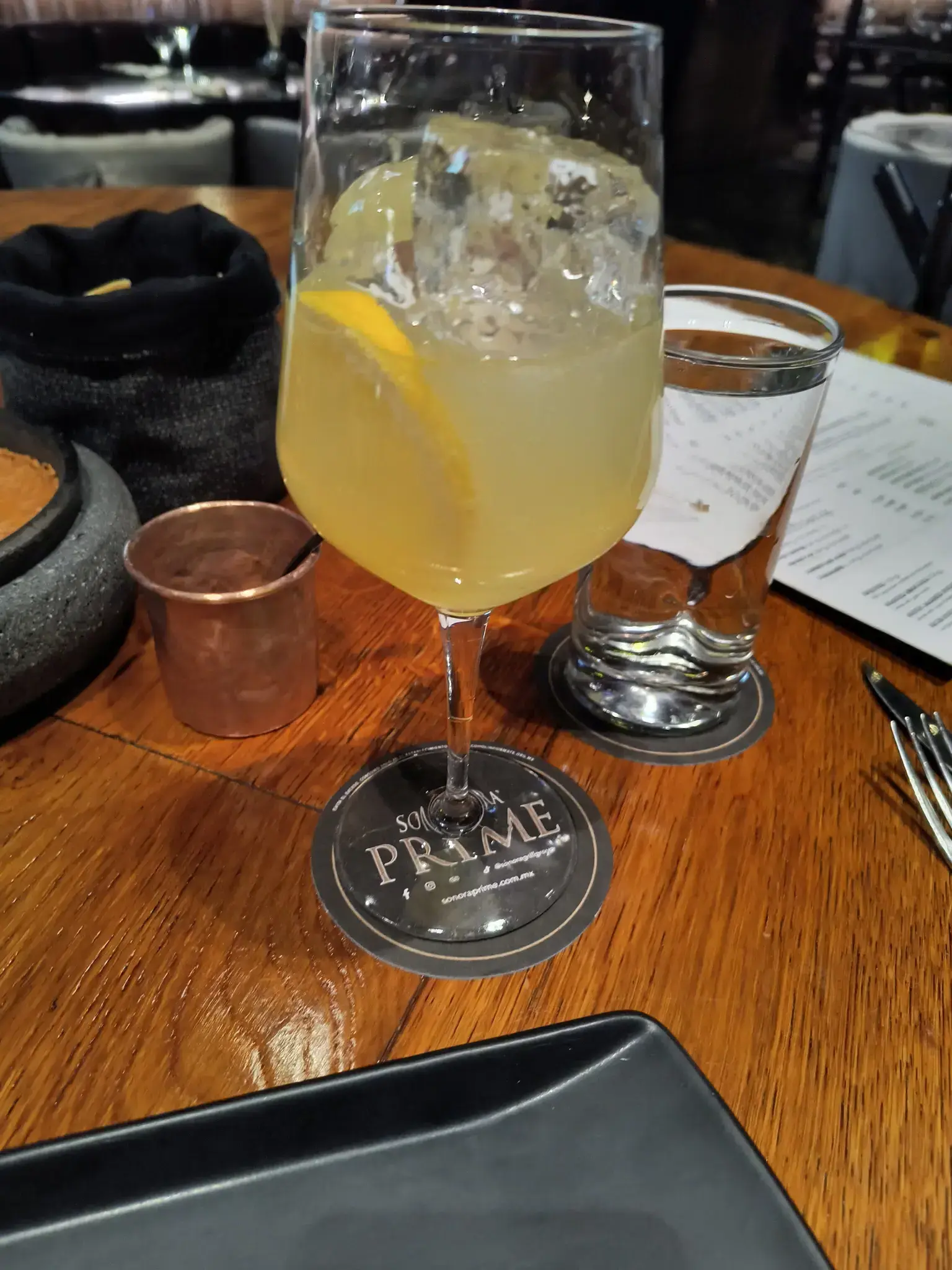 We decided to try a fine dining experience tonight. I heard to do fine dining because it is more affordable in Mexico. Travis's sister recommended the Sonoma Grill. It was in the Hilton in Centro across from Alameda Central park. Since it was Friday night, we made an online reservation for 5:30 pm; though it was not very crowded, so probably not required. We dressed up best we could; we did not bring any dressy clothes. Some people were dressed up, though a guy at the table next to us had shorts on. In the reservation, we requested a normal height table but were still seated at a high table. Just harder to be comfortable seated in a high bar stool while trying to eat. Another group moved from a high table to a normal height table.