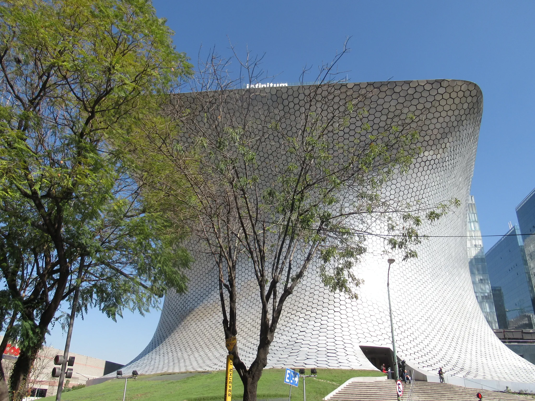 We took a bus to the Polanco neighborhood. This was even further than our bus yesterday. However, it was now Saturday where we found the buses much less busy and much more pleasant. Saturday and Sunday mornings were less busy than on the weekdays. The weekend afternoons were still busy. The Polanco neighborhood is known as a business person's neighborhood with a Rodeo Dr, Beverly Hills of Mexico City. We talked the park, down the Rodeo Dr., and I had a donut while we waited for the museum to open at 10:30 am. Museo Soumaya was a free museum (also with free restrooms; though with my donut, we had gotten change today); the building was amazing and so was the collection (much more in it than I expected).