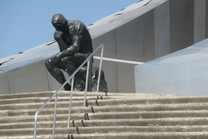 Here was the beautiful building. It was just as beautiful inside with swirled ramps to the different levels (I estimated 6 levels) and a glass skylight at the top. I googled it, and supposedly, it cost almost $800 million to build -- crazy! Rodin's The Thinker outside.