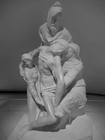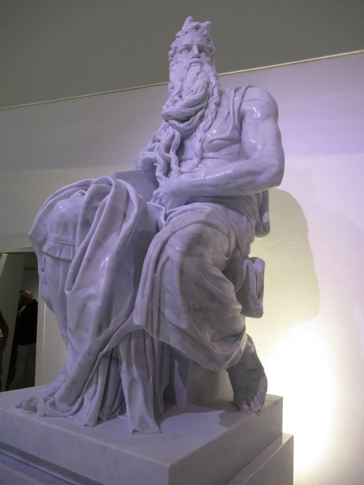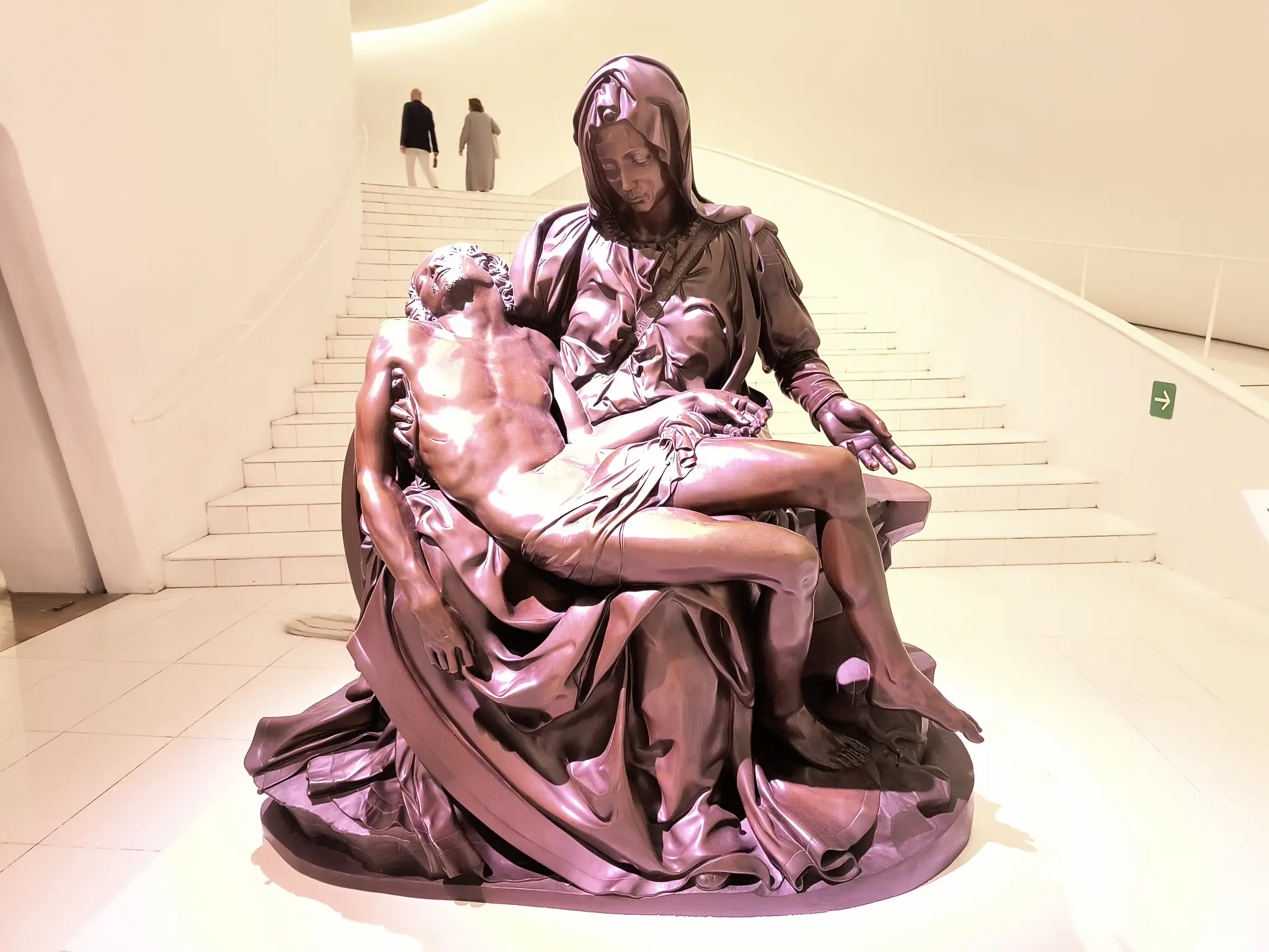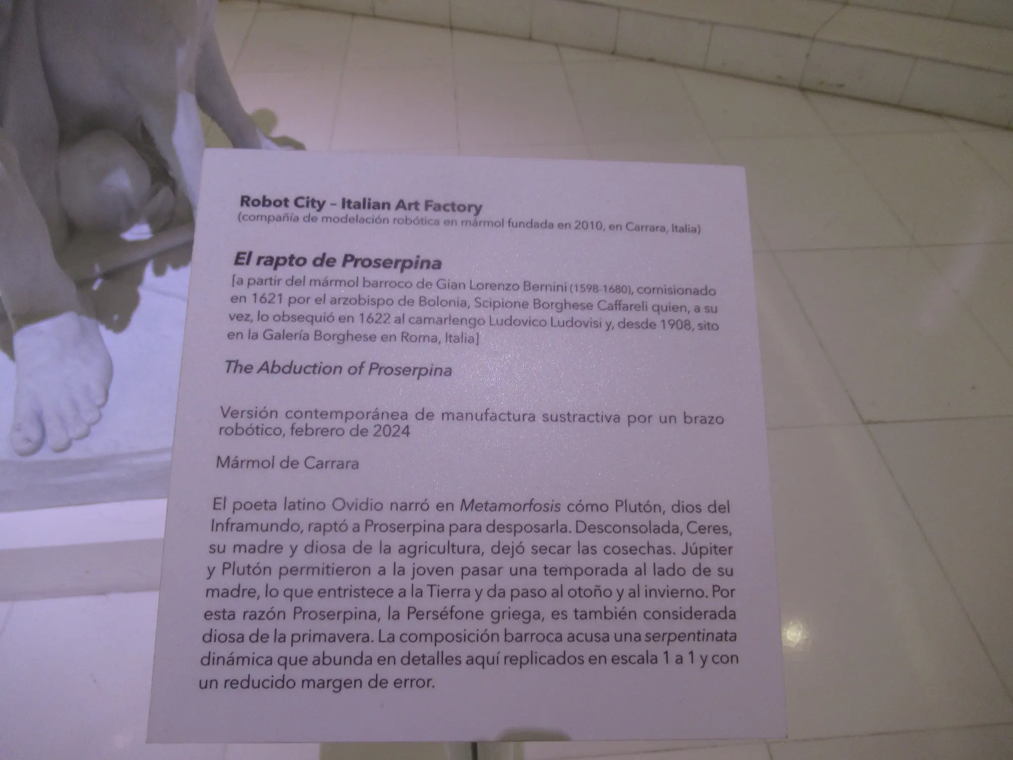 These reproductions were created by an Italian company that created a 3D imaging technology to image the the original. Then created casts that they filled with crushed marble. The process is described below in Spanish. All my pictures on the ground floor turned out pink, so for some, I changed them to B&W.; It must have been the lighting.