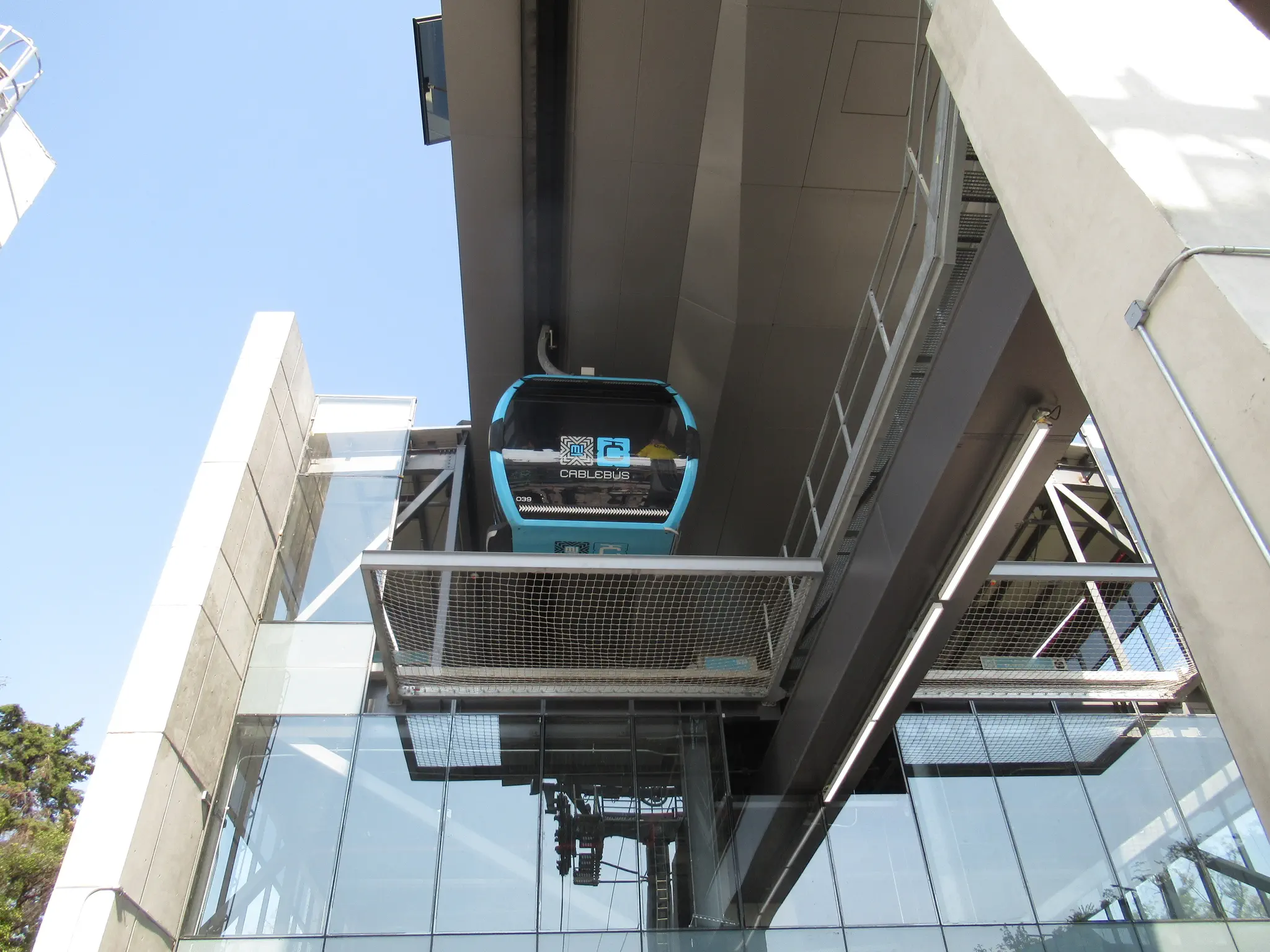 Next, we headed to the Cablebus for a scenic ride over the park that we visited yesterday, Chapultepec, called the lungs of the city, like Central Park in NYC. This was Cablebus line 3, which just opened in September 2024. We did stop for some water because we did not bring the backpack to the museum. One of the cable cars had a Mexico flag at the bottom, but I only got a picture of one that did not. There was a long line at the cablebus. While I waited in line, Travis went to fill the Metro card. The Cablebus was 7 Pesos, one more than the bus. Also no machines here took a credit card, so we were scrapping together cash and making sure that we left enough on the cards to get the bus back to the hotel. Travis later figured that less people in this area had credit cards, but had cash. I assume that the Mexican cash does get more circulation than US cash, particularly with street vendors. I heard a stat before going that more than 50% of Mexicans work in the informal market (street vendors, etc. without income tax withheld).