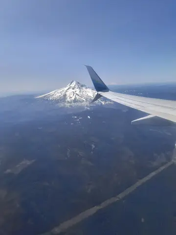 After boarding, there were further delays; the Captain noted that they had to reboot the computer to try to get it to work. He said it was a 3rd backup system and that we could go without it working, but that they had to try. His reboot did not work, but maintenance's did. However, we did not take off until a little after 9:30 am for a 7:30 am flight...no guarantee on on-time take off, like they have on bags. The Captain also noted that turbulence was expected, so they would not service snacks and drinks until 1-2 hours into the flight. He also kept noting that they had an award winning crew; that does not matter if they cannot work. The service was standard. I did not think it felt very turbulent; though the family agreed that it was turbulent. I guess that I have just had some very bad turbulence in the past. We were quite hungry by the time we got our snack and drink. We had some snacks in our bags, though I should have remembered more, I normally do have more. We were assigned seats 25A-D for both flights earlier than check-in. They were all together, not all the way to the back, with a window and two aisles, so very nice for basic fare. Hello, Mount Hood and snowy mountains.