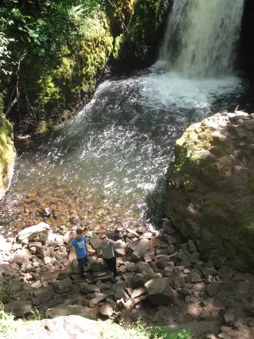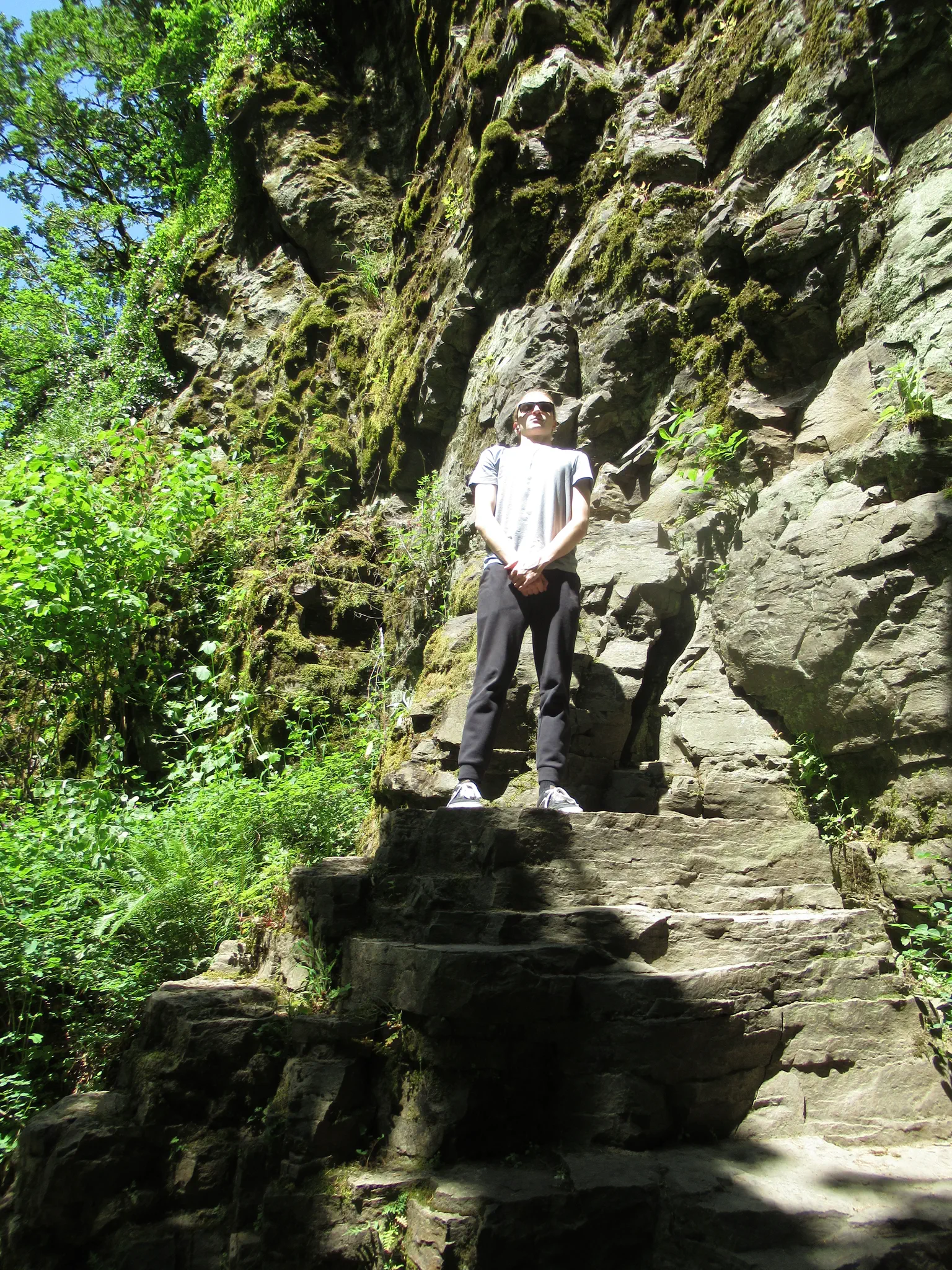 Owen found a big rock to climb. We were able to go down to the waterfall pool. All the water that I touched was very cold; too early to swim in waterfall pools.