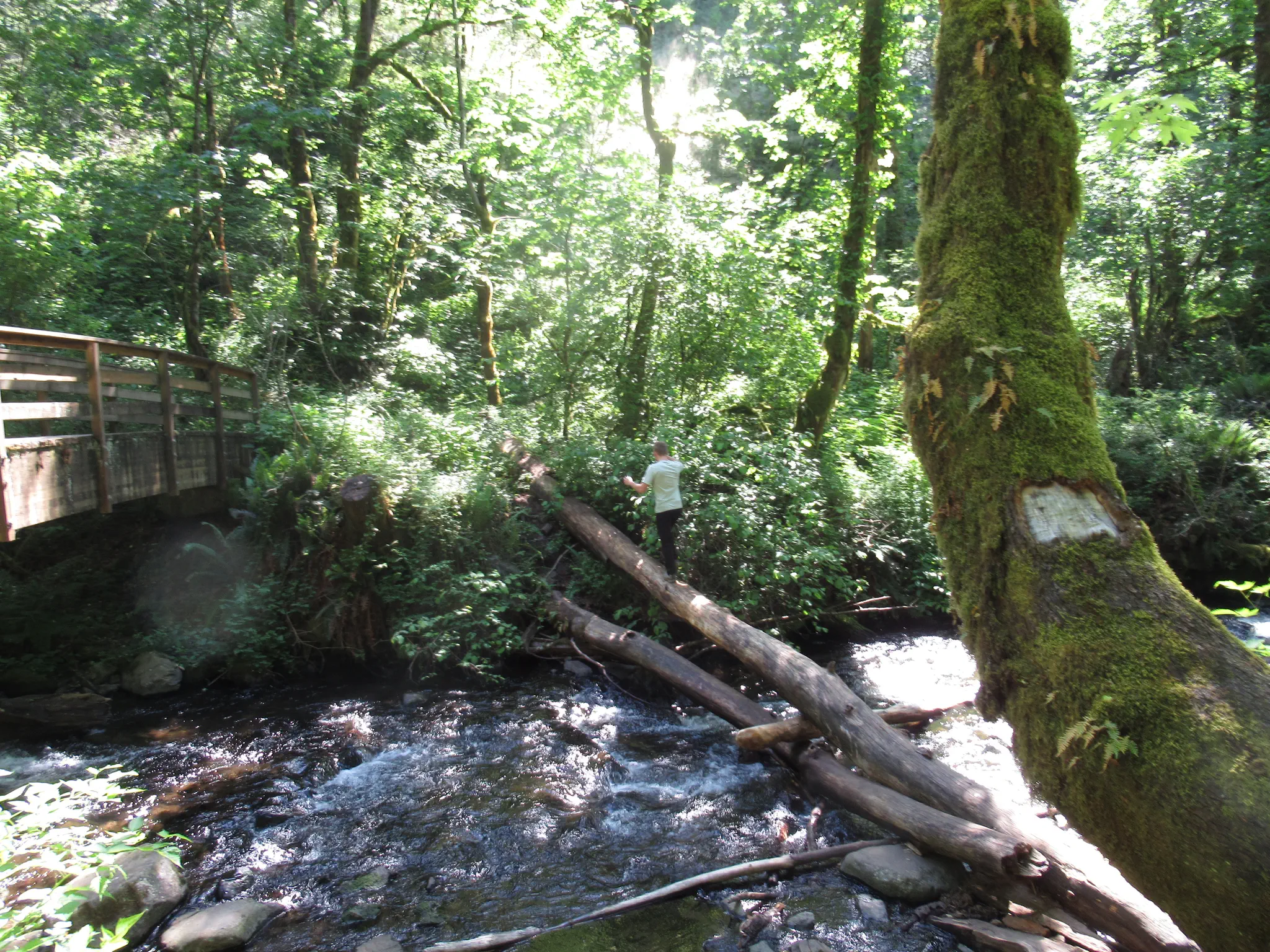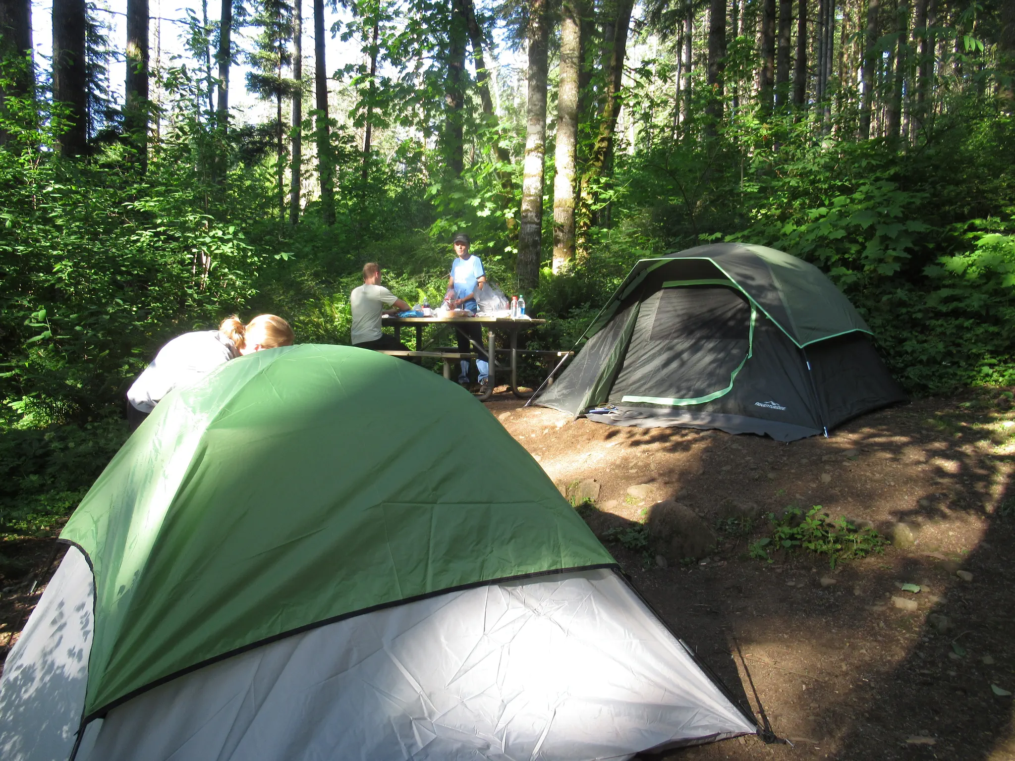 Though our campsite was not ideal/the best choice. Our tents were on two different levels. Our tent was on the top level with a drop off pretty close to the tent. The rainfly stake was a tripping hazard by the picnic table. The kids' tent was on the lower level, going more downhill where their air mattress was pushing on the side of the tent and bending it badly. It is pretty though. The Milky Way was supposed to be very visible on our nights in Oregon, but there quite a few trees blocking the sky view. Travis did see it though. I just saw many stars.