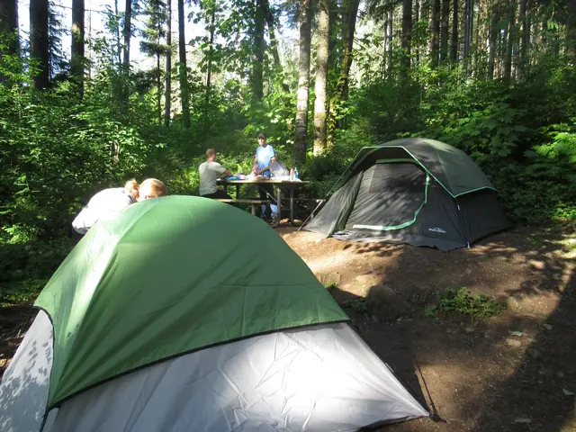 Both campsites were near the river, so also near the the train and interstate highway 84. This one was a hike-in campsite, which we have not done before, but they were charging out of state residents an extra fee for RV hook up available sites or pull into sites. When we arrived, I pointed to the "Enter" sign that we followed and completely missed the hike-in/Loop C parking. We found the camp host and saw him to ask. For check-in, he pointed us to the Park Ranger. Some check-in was online -- number of tents, any pets, and car info. Since ours was a rental, I could not complete this park. She, the Park Ranger, complete it, gave us a rearview mirror hanger with check-out date, and pointed us in the right direction. The parking did have the promised water spigot.