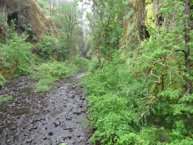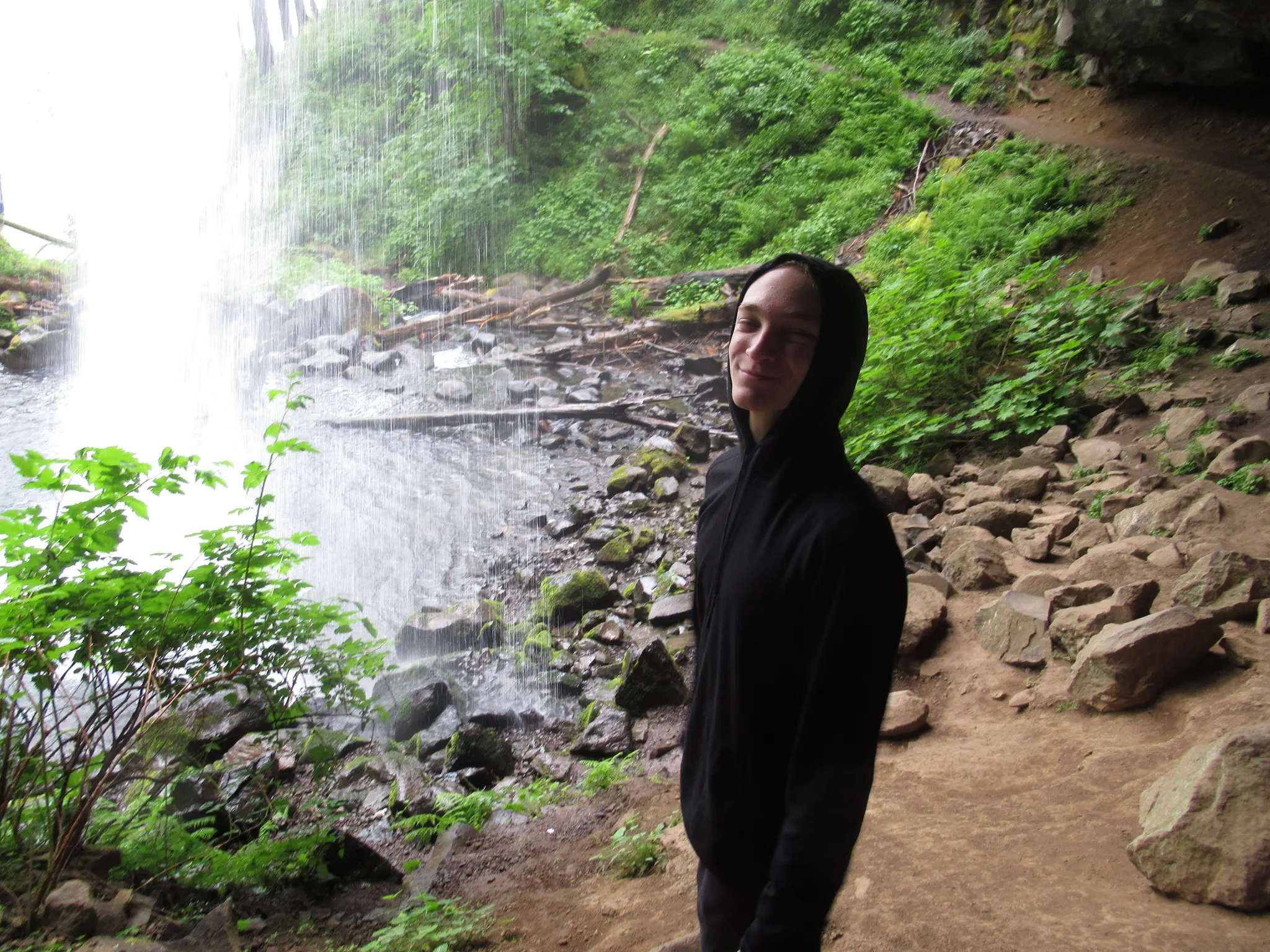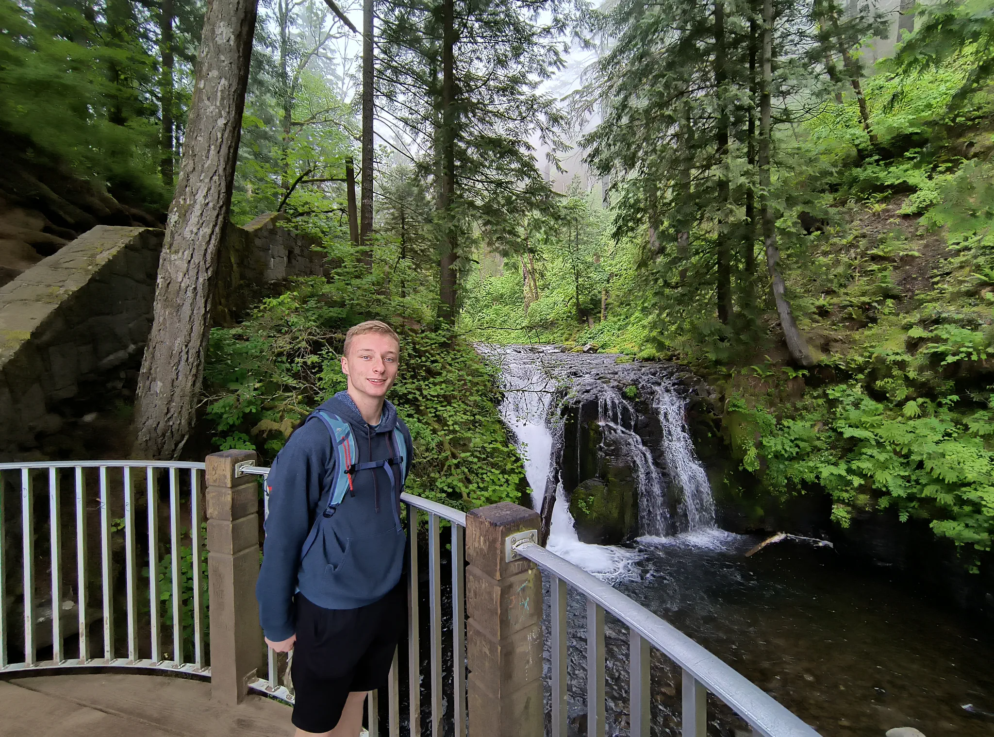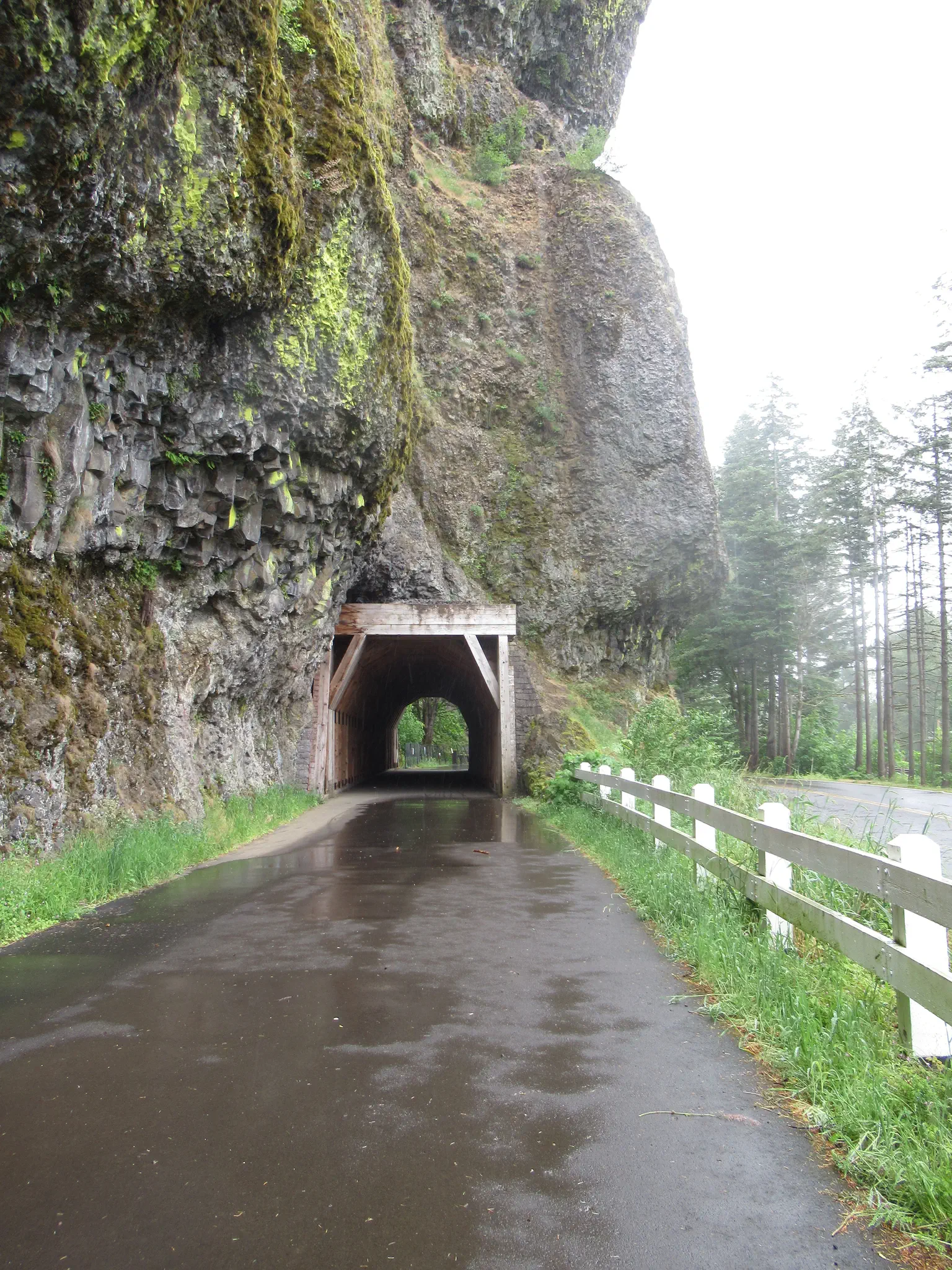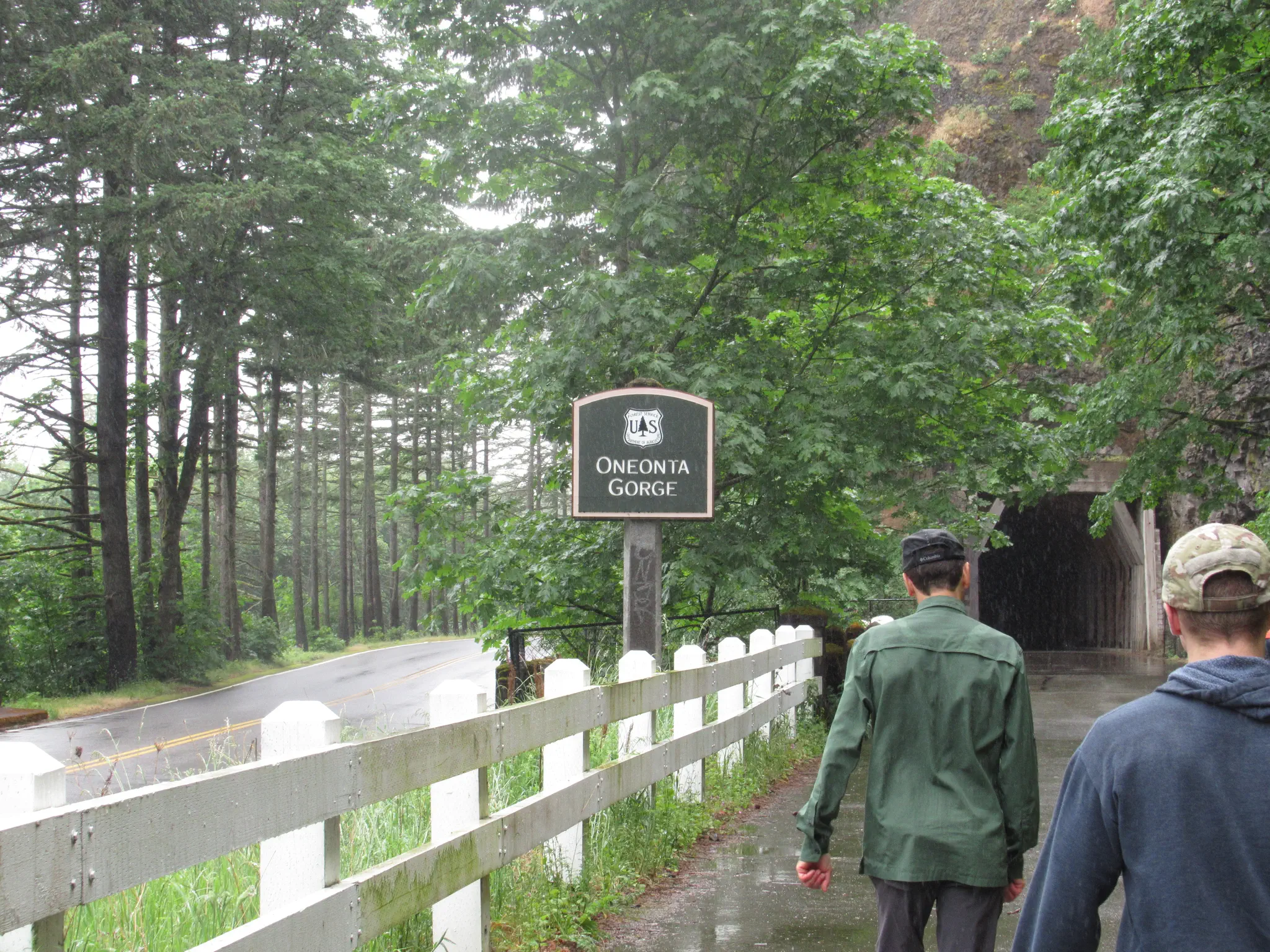 Next, we stopped at Oneonta Tunnel; the Oneonta gorge trail was closed. Looking like a slot canyon, it would have been a cool hike. A picture of what we could see below. The tunnel used to be part of the Historic Columbia highway 30 (to the left now in the picture) until cars got too big. They originally sealed the tunnel up and then decided to rebuild it. All the graffiti or defacing inside was from like 2020 or newer, which felt weird.