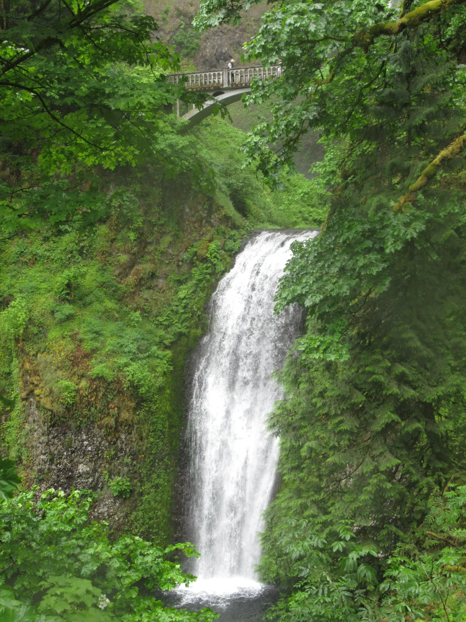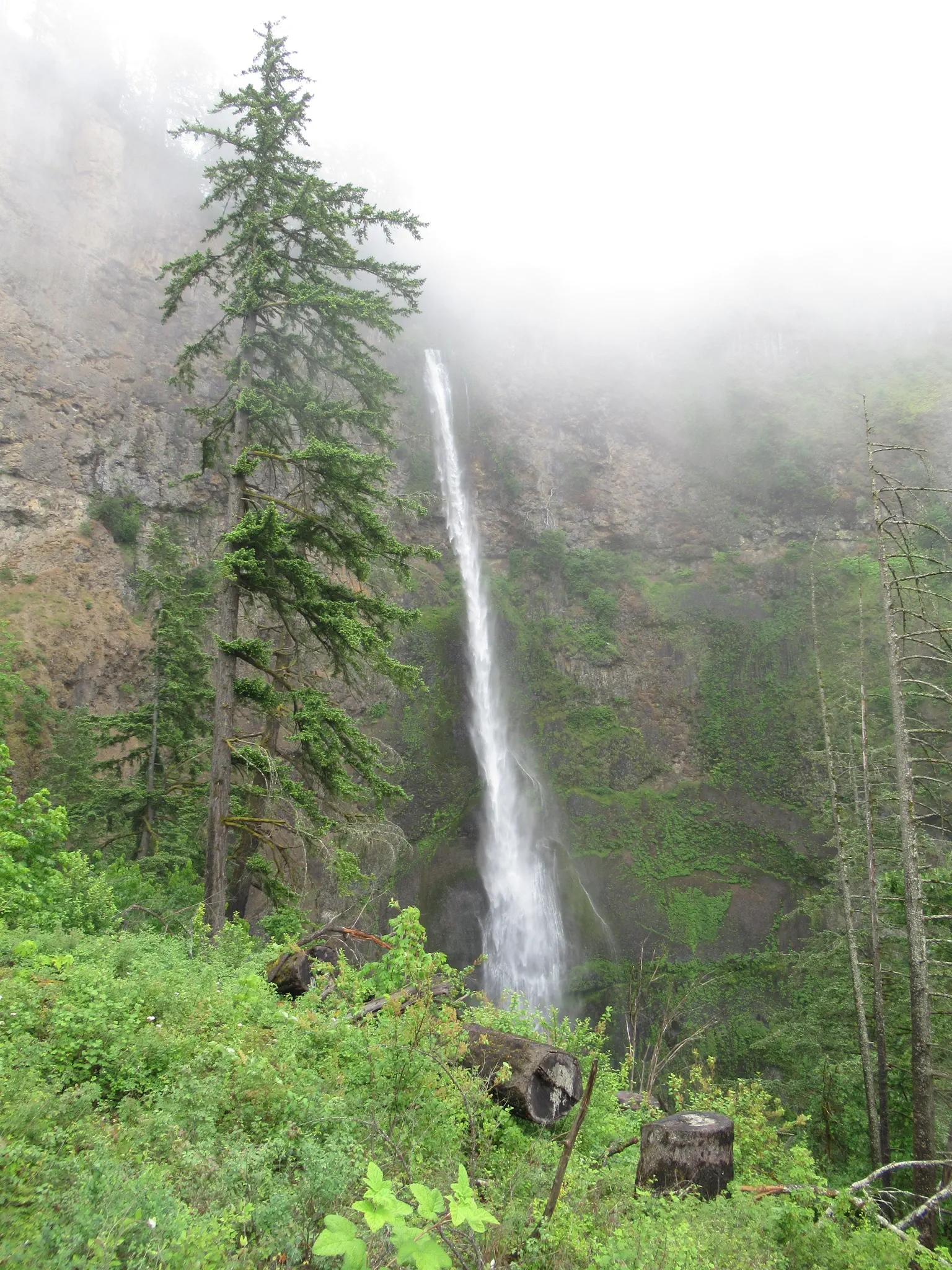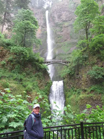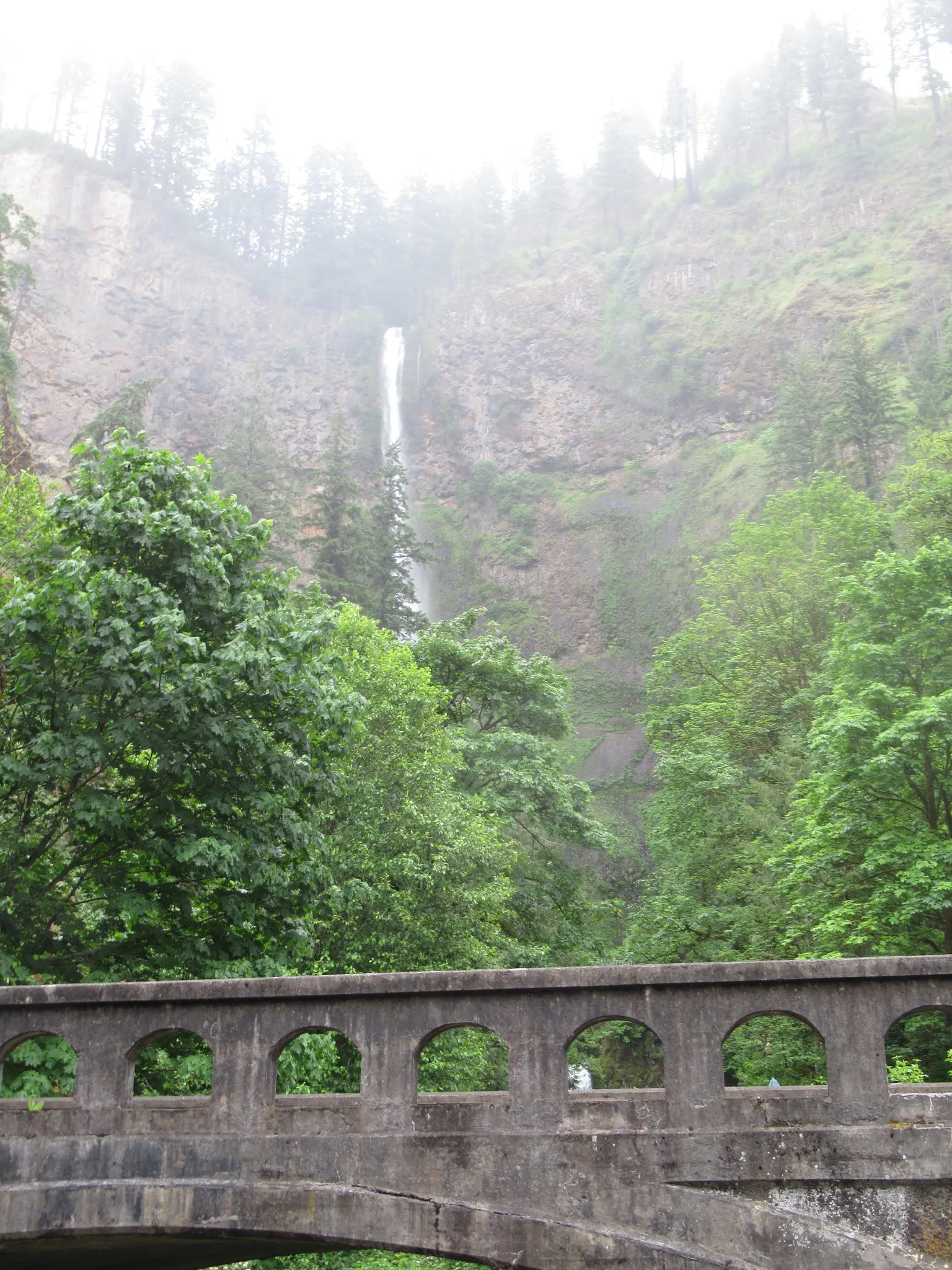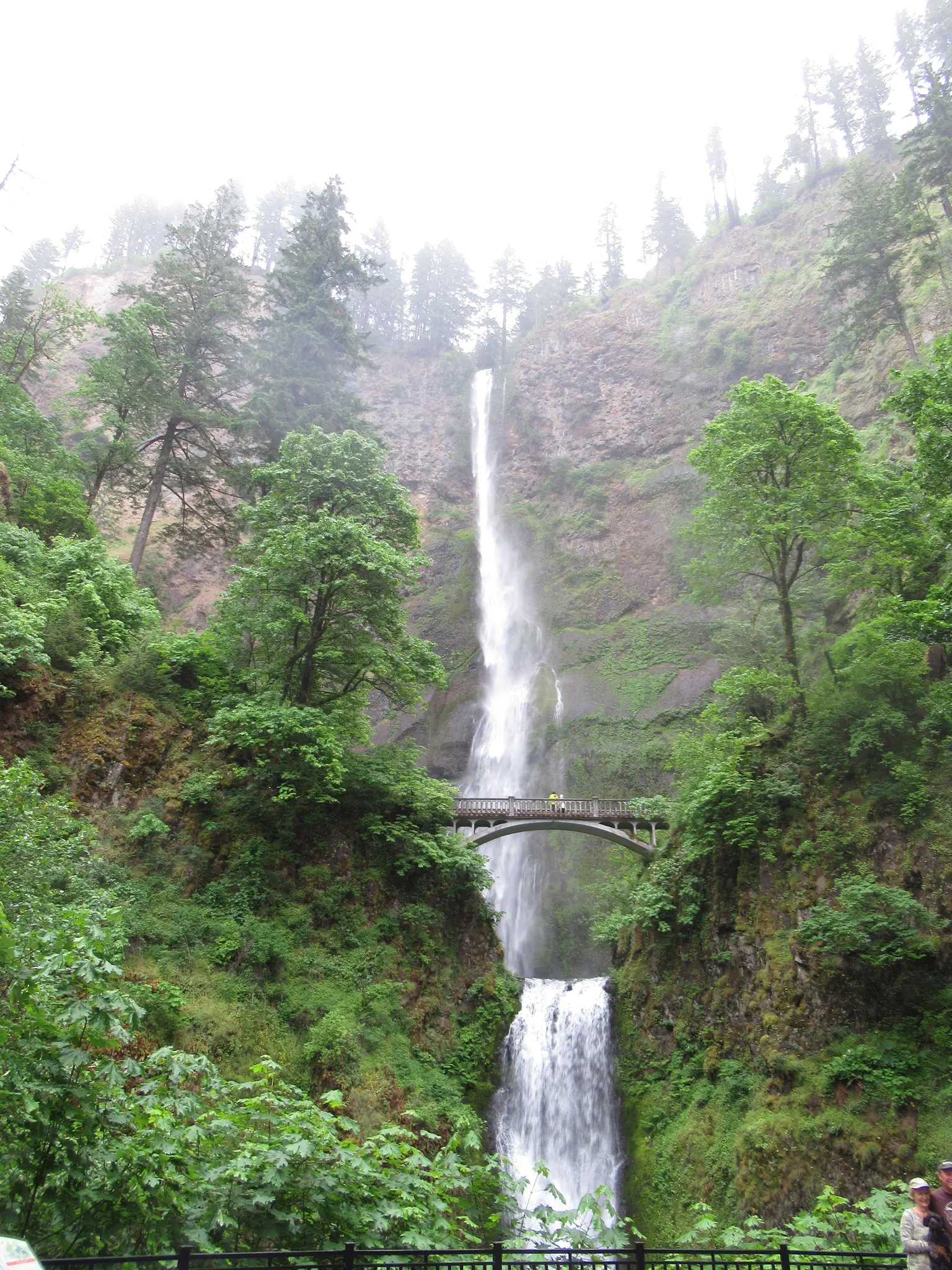 This is a very pretty and popular waterfall. We went to the viewing platform and then the bridge. Then we hiked to the top of the waterfall. This was a hard, uphill hike; there were signs saying Switchback 1 of 11. I have not seen switchback counts labeled before. Unlike yesterday, this was a rainy day. It was not too bad. I did wear a poncho later; others in our group did not. The rain or mist made the pictures look good and rainforest-y. We were now on the wet side of Oregon to later go to the dry side.