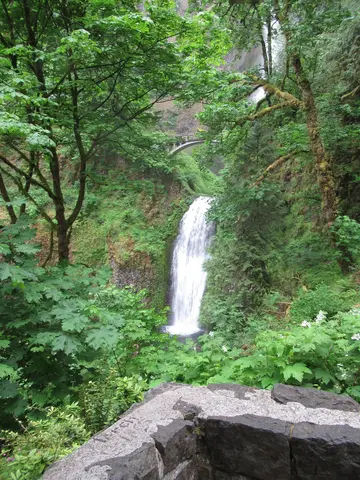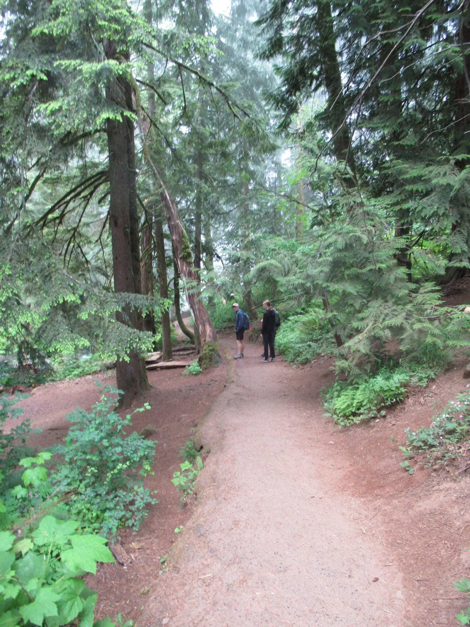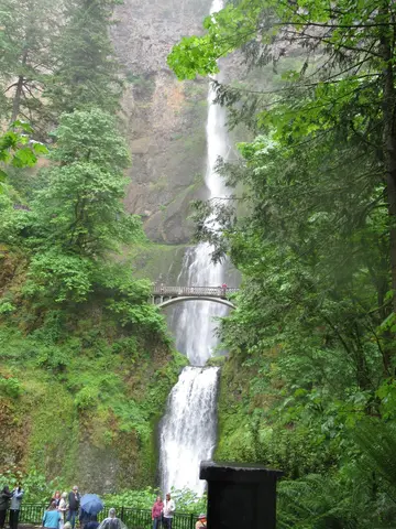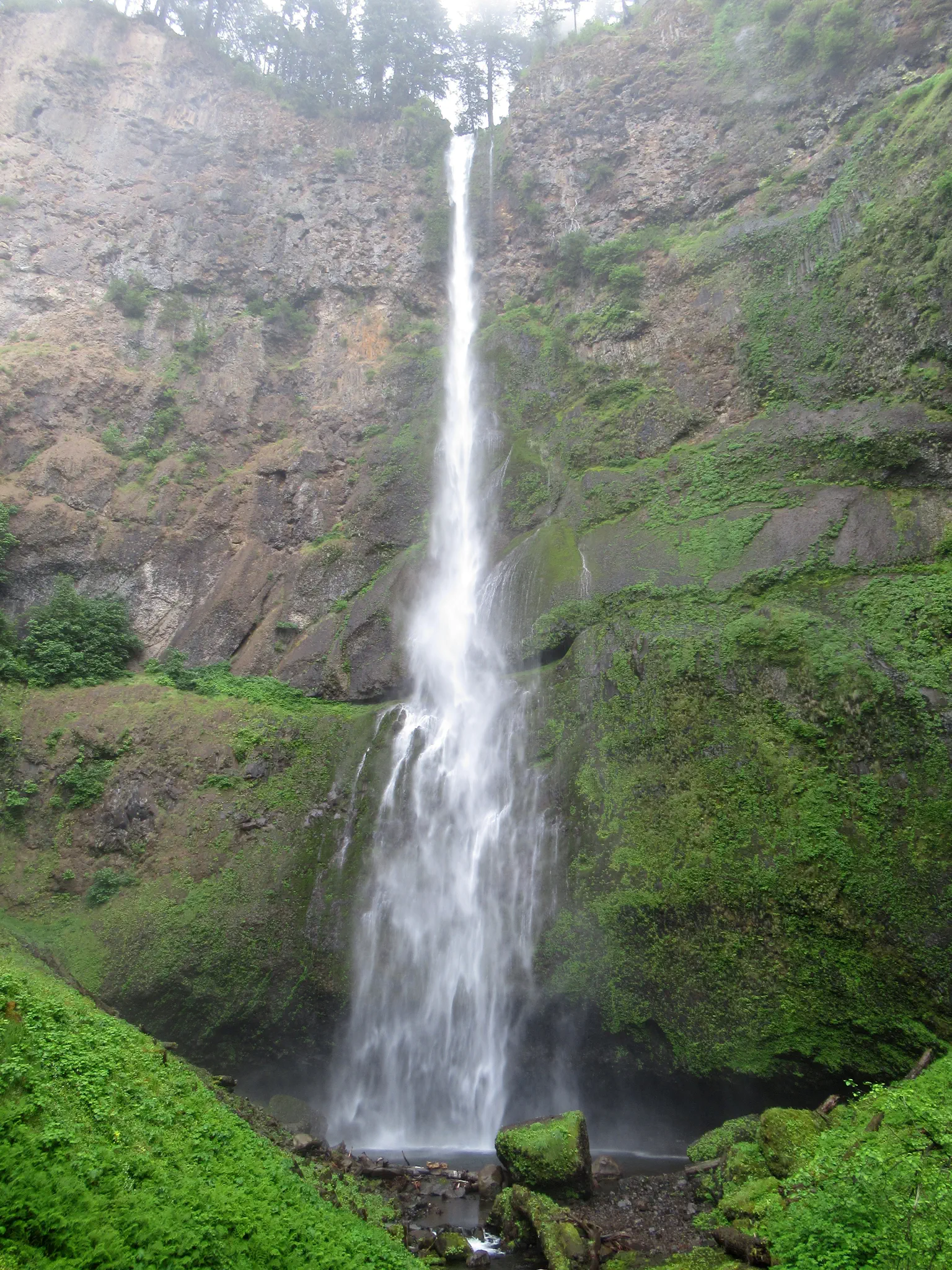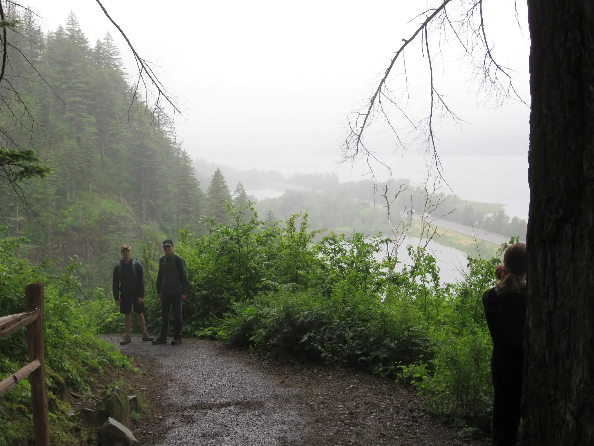 This is a very pretty and popular waterfall. We went to the viewing platform and then the bridge. Then we hiked to the top of the waterfall. This was a hard, uphill hike; there were signs saying Switchback 1 of 11. I have not seen switchback counts labeled before. Unlike yesterday, this was a rainy day. It was not too bad. I did wear a poncho later; others in our group did not. The rain or mist made the pictures look good and rainforest-y. We were now on the wet side of Oregon to later go to the dry side.
