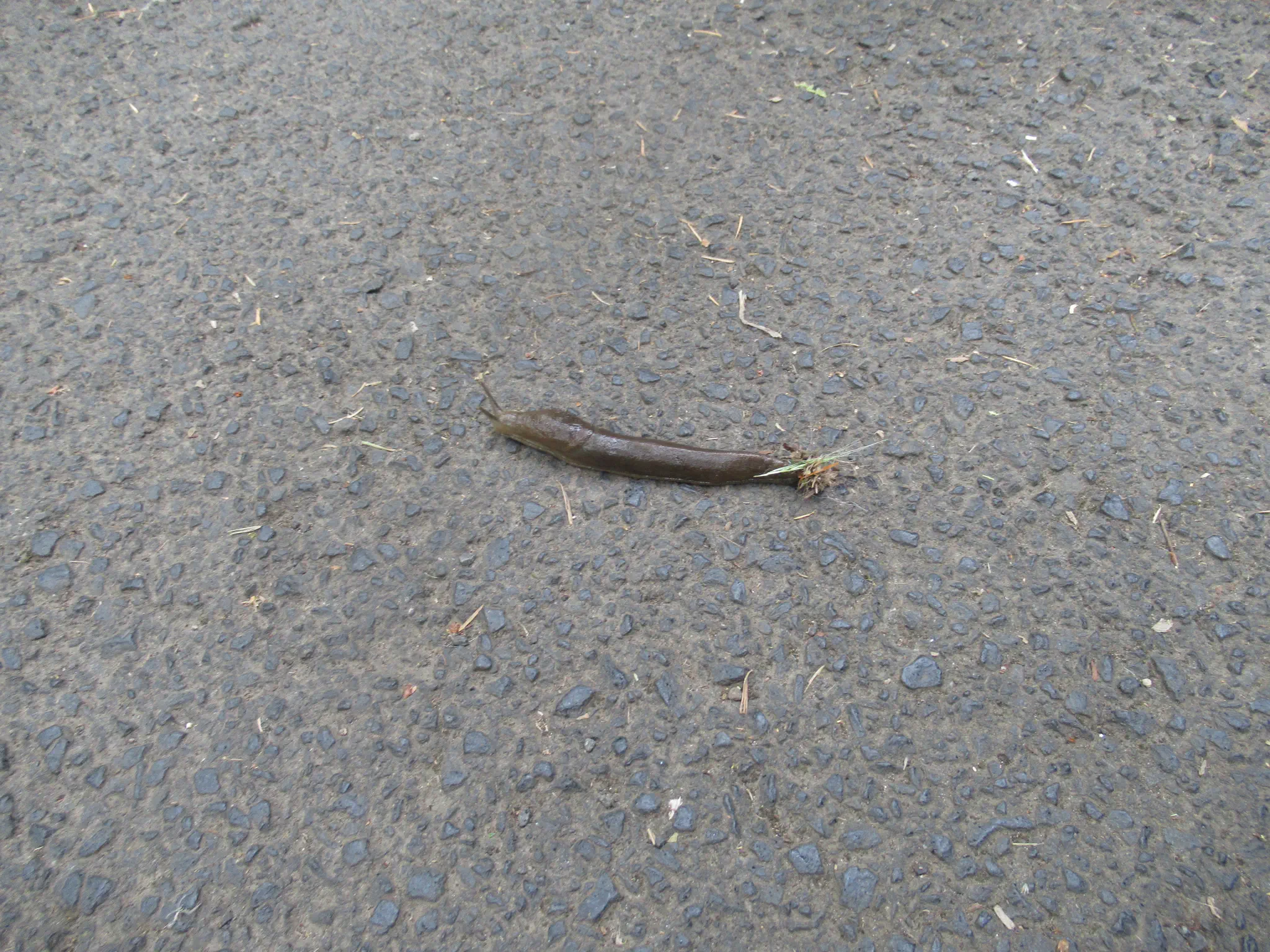 We found our first banana slug. We never found any in Washington (I did not know it was a goal then, but Travis mentioned it). This one had something that it was trailing along.